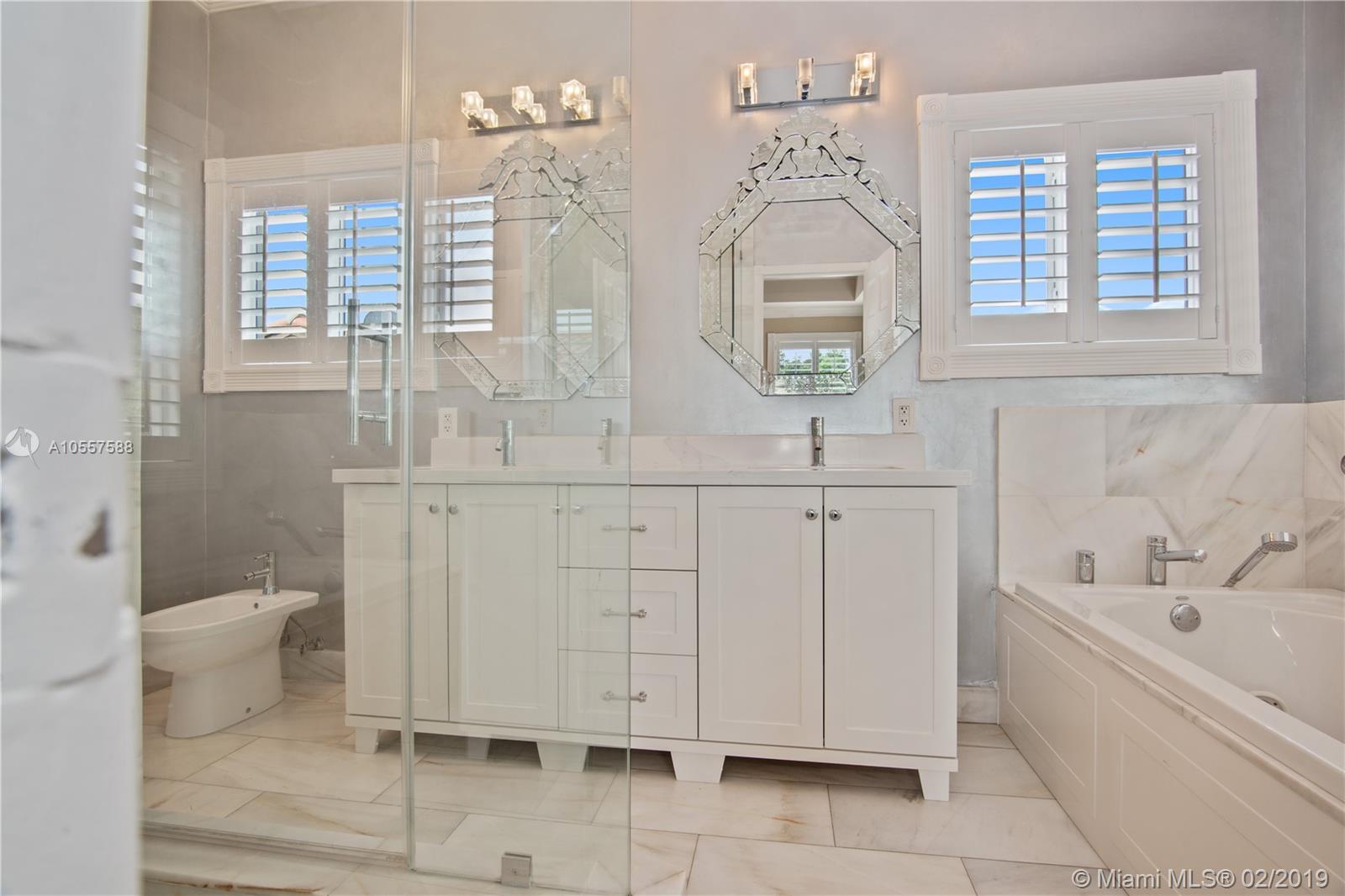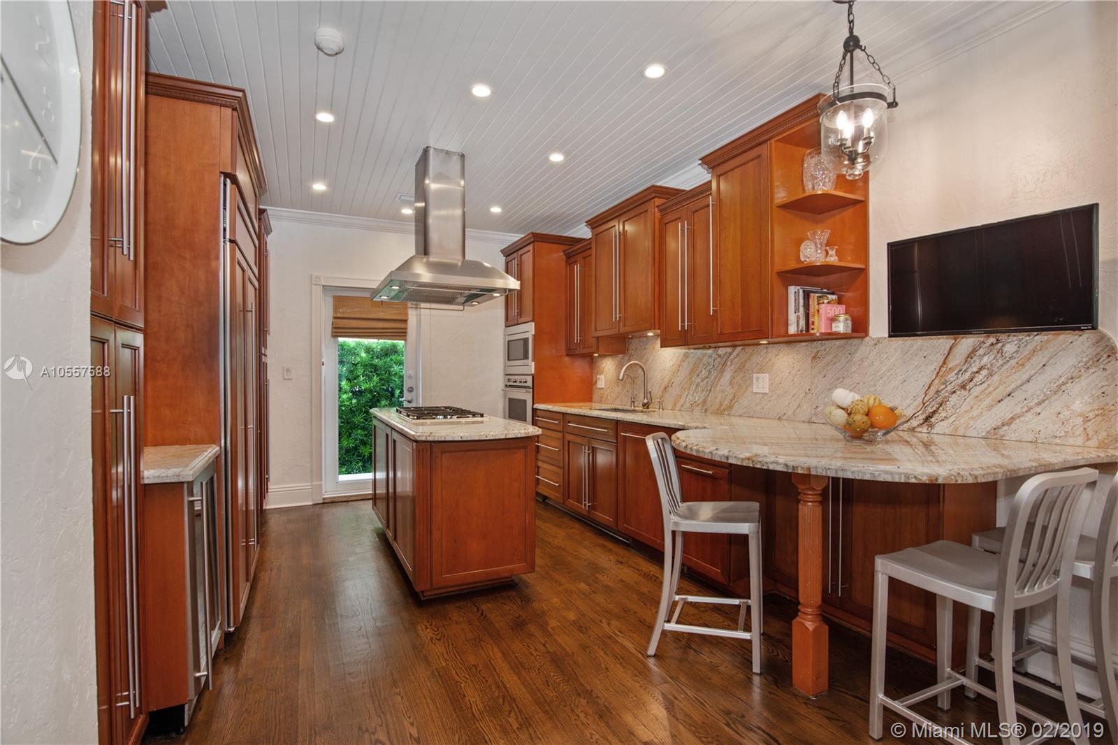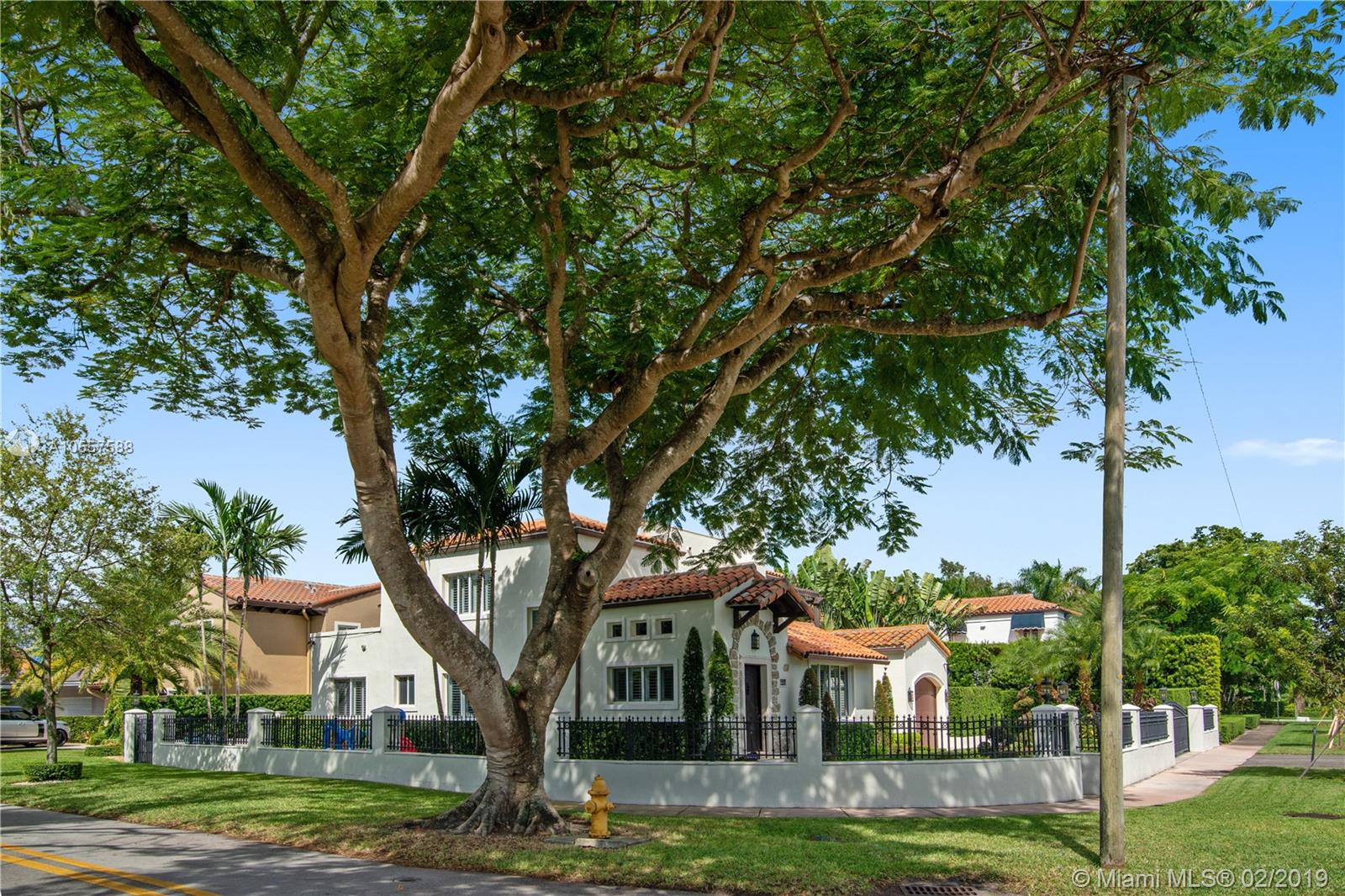 Completely renovated Mediterranean masterpiece, with a seamless 2010 addition,offering a classic contemporary modern design.Brimming with architectural beauty such as a grand foyer entrance, delicately refinished wood floors,Calacatta marble fireplace,recessed ceilings enhanced with state of the art lighting, security,sound,camera and irrigation systems.Upstairs,a spacious & dramatic master suite with custom vanities, quartz countertop,metallic paint,venetian mirrors,a glorious terrace + an additional bedroom with ensuite bath. 3 bedrooms,2 baths downstairs.Pretty pool and spa w/ remote waterfall, fountain, a tranquil covered lanai & summer kitchen. Walled & gated for privacy, this residence offers immense curb appeal near Riviera Country club, fine dining, theaters, neighborhood parks..