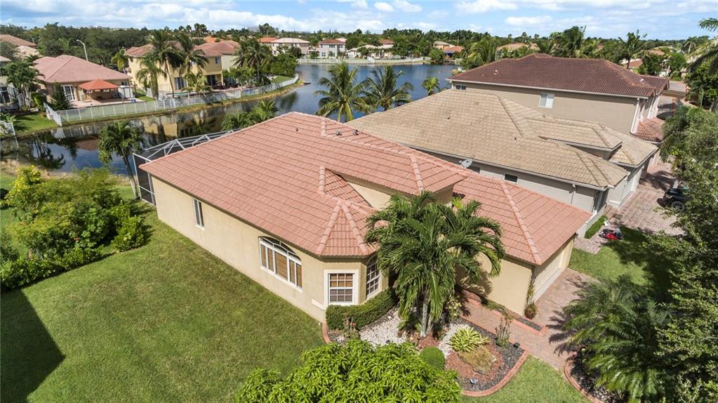 Charming "Monarch Lakes" home with a stunning lakefront view in the gated subdivision of "Portofino South". Meticulously maintained and ready for its future owner. Spacious master bedroom with generous sized walk-in closet and bathroom. Great distribution of space with a kitchen that opens out to a family room overlooking a beautiful lake. Great lighting throughout. High ceilings, well distributed lot, great community amenities and located within minutes of retail, restaurants & expressway access.