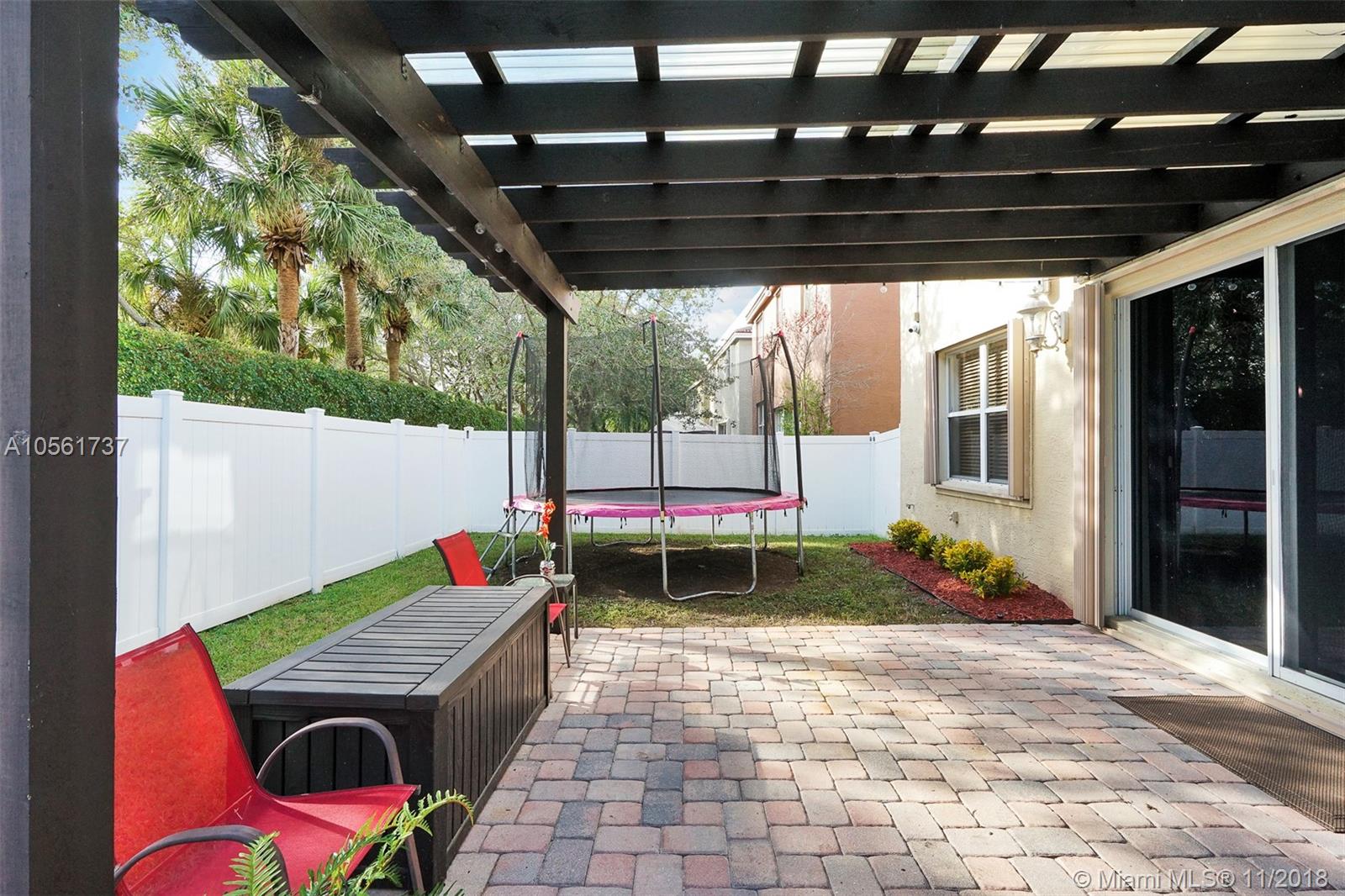 Beautifully maintained & move in ready 4bed/2.5bath home located in the desirable gated community of Riviera Isles. Features include formal living & dining room, newer AC, granite countertops, 2018 new stainless steel appliances, kitchen island, crown molding throughout, surround sound, sprinkler system, alarm with cameras, 24in tile downstairs, dark laminate wood floors upstairs, large master walk in closet, master bath w/ double sinks, tub/shower combo, separate toilet, front load washer & dryer upstairs, new landscaping, covered patio, nice size privacy fenced yard & hurricane shutters. Community features include secured guard gate, clubhouse, gym, resort style pool, basketball & tennis courts. Great school zones & conveniently located close to 1-75, shopping and restaurants.