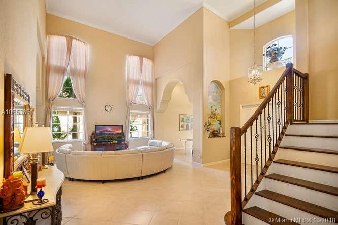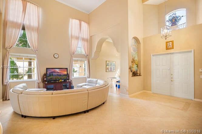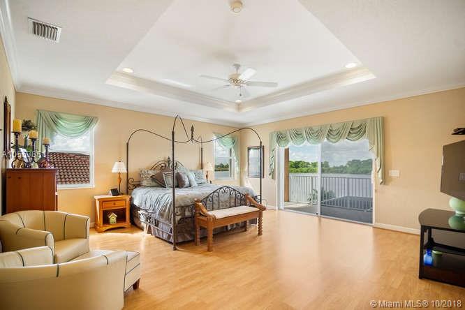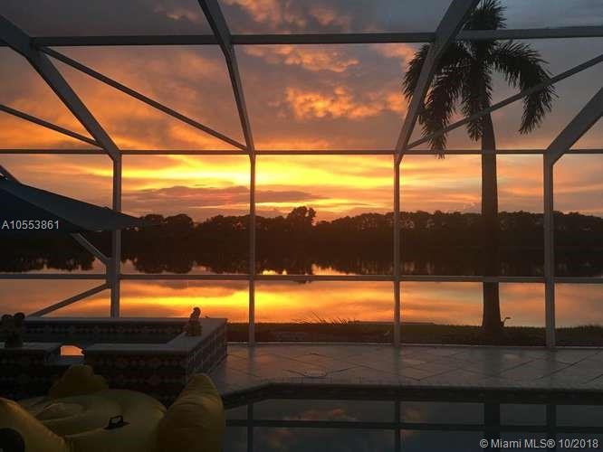 Magnificent views and sunsets! 2 story home with an amazing screened pool overlooking the lake. 5 bedroom, plus game/office room, 3.5 bath, California closets. 3 car garage, spacious open kitchen with center island, granite counters, wood cabinets and stainless steel appliances with a double oven, dinette area. Tiled floors throughout the living areas, wood laminate in bedrooms and the wood winding staircase, accordion hurricane shutters. Top rated schools, low HOA that includes security alarm monitoring. ***See broker remarks***