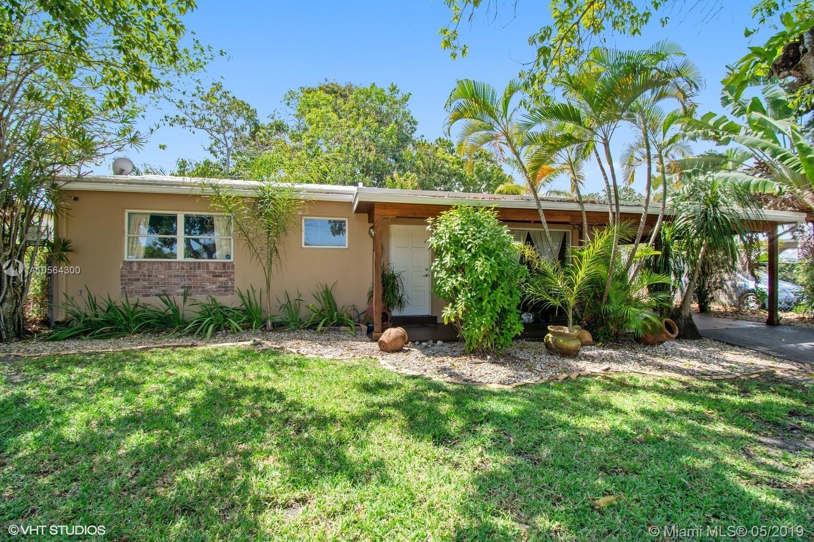 A cozy refuge to come home to. This 2 bed/2 bath home is nestled in nature with lots of shade & fruit trees. It has a very unique tongue and groove wood ceiling on the front porch and the carport, with plenty of lighting. Inside still has some of the original mid century features like the white brick mantle with an electric, decorative fireplace, and the bathroom tiles. But is also updated with tile and wood laminate flooring, and granite counters/stainless appliances in the kitchen. Separate laundry/utility room with gas water heater. Oven and cook top are also gas. Home comes with a hard wired alarm system, including outdoor cameras covering all the entrances into the home. Great central location near I-95, YMCA and a farmer's market. 24 hours notice to show, please. Call listing agent.