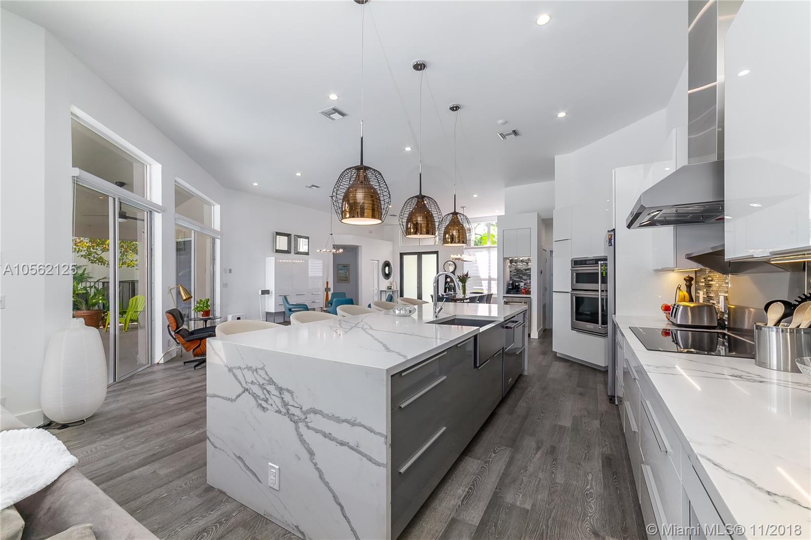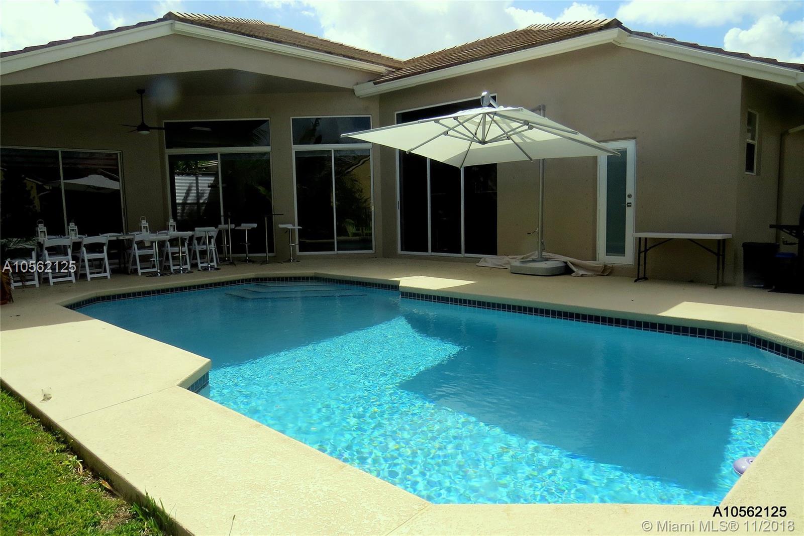 Featured on "Houzz", This 4/3 Totally Designer Remodeled Weston Hills Beauty, is Highlighted Immediately upon Entering with Gorgeous Tiled "Wood Look" Flooring throughout. Eye-Popping Suspended Light Fixtures by Foscarini/Italy make quite the Impact over the Natural Marble Island and High Gloss White Cabinetry in the New Kitchen. The Dining and Living Areas Flow Beautifully, Showcasing the Stunning Accent Wall of Quartzite. Any Buyer would delight in the Modern Serene Vibe of the Master Bedrm/ Bath and Bedrooms. White, Bright, Inviting. Top of the line Roller Shades are Just a Mention of the Numerous Highlights of this Home. Great Pool Area, Perfect for Entertaining and Relaxation.Welcome Pickiest Buyers-- A+ Schools and Terrific Neighborhood.