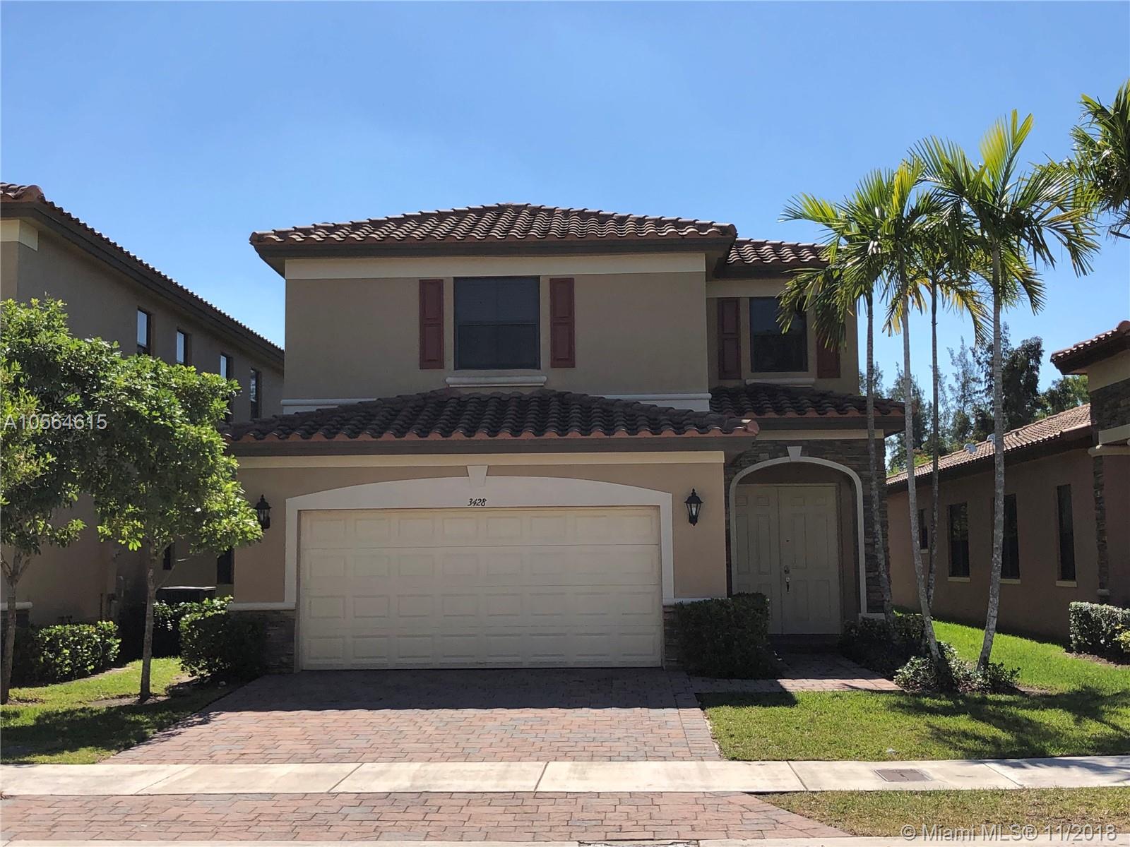 Best priced home at Aragon, a Resort style gated community with 24/7 security. This cozy home features open and bright spaces, a spacious kitchen with granite countertops, stainless steel appliances, a comforting garden view and a guest bathroom in its ground floor. The 3 bedrooms and 2 baths along with the laundry room are located on the second floor. The oversized master has 2 walking closets and a massive master bath with double sink and separate tub and shower. Enjoy the Miami lifestyle grilling in your backyard or at the community amenities: pool, spa, fitness center or the kids playground. All this beauty near A+ schools and easy access to major roads and highways.