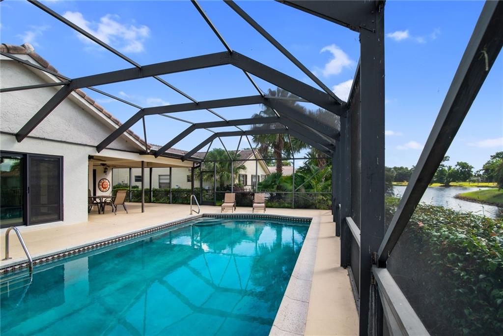 Exquisite community with park like setting and NO MANDATORY MEMBERSHIP. Updated eat-in gourmet kitchen with propane gas stove and stainless appliances Serene and peaceful views from your impact glass sliding doors that open up to an inviting and peaceful screened in pool area overlooking a canal. Living/dining open concept with vaulted ceiling and beautiful wood floors. Guest bathroom has been totally renovated in a contemporary style. Large propane tank accommodates both the kitchen stove and the generator, should there and be a power outage. This beautiful home is priced to sell and also includes new A/C unit installed in 2018.