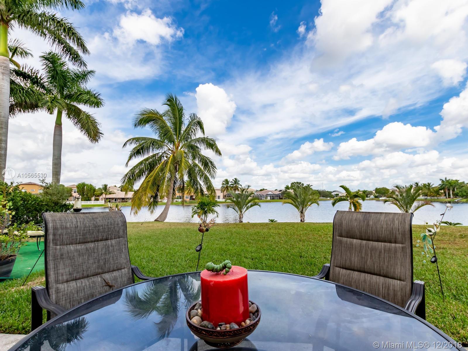 Splendid home with one of a kind majestic views of the lake throughout the living room, family room and kitchen. So much to appreciate,located on a large Pie shape corner lot w/room for a pool in one of the most sought after community in the heart of Pembroke pines.Freshly painted interiors, modern laminate floor upstairs and tiles in all the social area. Kitchen has plenty of cabinets w/ granite counters. Half bathroom conveniently located on the first floor. Extremely spacious & bright, excellent floor plan. Master suite offers a double closet, sitting area and views of the lake. Excellent place to entertain. Offers community pool, playground and security patrol. Accordion shutters for storm protection. Well maintained home ready to move in. Good schools, close to highways and shopping.
