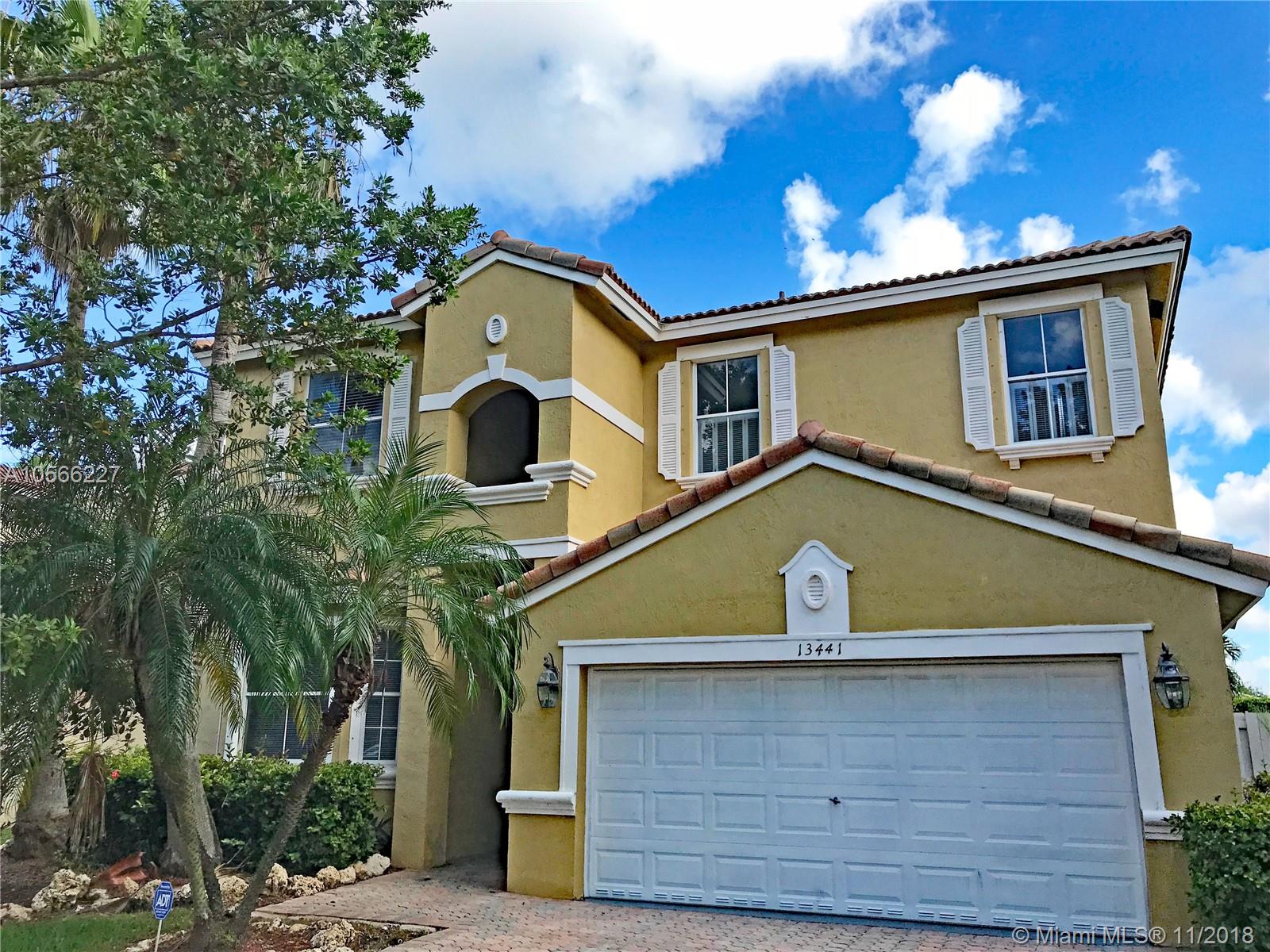 Spacious two-story Mediterranean-style single-family home with 2,633 Sq.Ft. of living area, 3BR-2BH upstairs and 1BR-1BH downstairs. Open layout with volume-ceilings, glass windows that brings in natural lighting, formal living, and dining rooms, breakfast & large family room, honey oak kitchen cabinets, walk-in pantry, SS appliances, fenced yard, Jacuzzi style pool, double garage, washer & dryer. Elegant ceramic on the 1st floor and brand new carpet in all bedrooms. Large master suite with a walking California closet, makeup vanity with his & her sink areas, whirlpool tub, Hurricane Shutters, double garage. Mariposa is a gated community in the prestigious Monarch Lake neighborhood in Miramar, Fl. close to schools, Shopping areas, restaurants, I-75, & Fl Turnpike