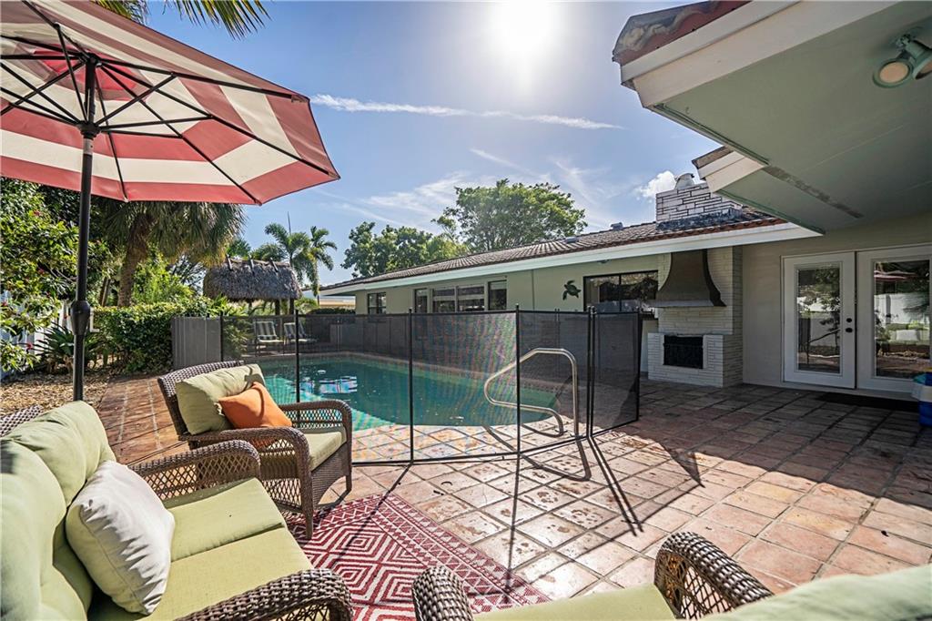 Charming shabby chic home on a huge lot East of US1 in redeveloping Pompano Beach! 3 beds + den/office with 2 full baths and a half bath used as the cabana. Chicago brick driveway, new kitchen with natural gas chef's stove, granite counters, and stainless appliances. Two large living areas, remodeled baths and split bedroom floor plan. Huge yard with tiki hut on one side and kids play area on durable professionally installed artificial turf on the other with pool in between. The owner says sell which is reflected in the list price.