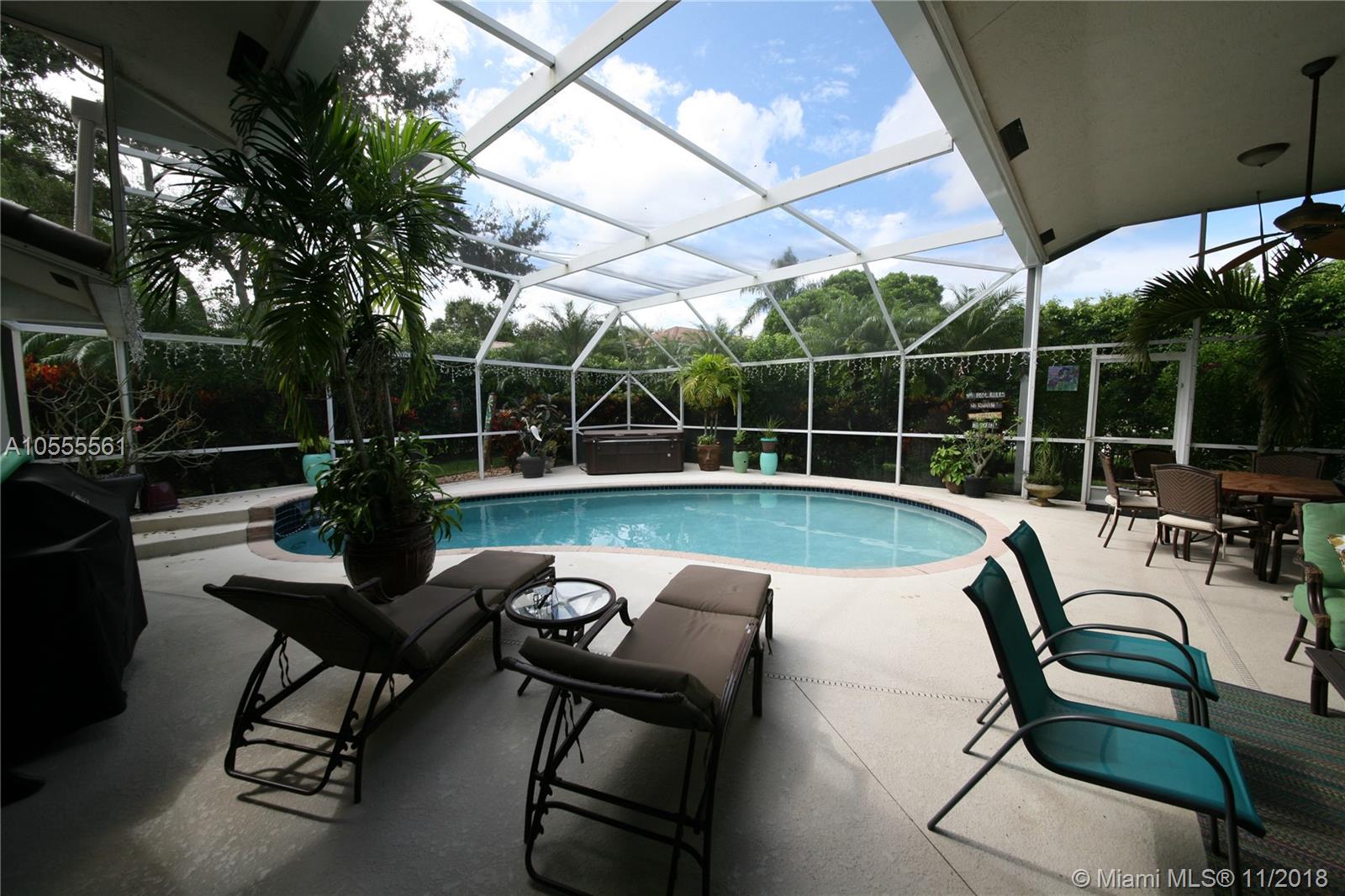 Run to this spacious well kept home on totally private interior lot with lush landscaping, circular driveway 3 car garage & BRAND NEW Roof spring 2018! This house has remodeled kitchen with double ovens, upgraded top of the line cabinets, quartz,pull outs & upgraded baths.This home has flexible floor plan & Perfect for indoor & outdoor entertaining with total privacy. Open Floor plan with 5 full bedrooms & 4 full baths, 2 zone a/c, Jacuzzi tub, whole house water filter, separate hot tub, fruit trees, accordion shutters & impact entrance doors & side windows, Great built ins & 6 walk in closets with built-ins, plantation shutters, LED High-hats throughout. Enjoy the fabulous private outdoor space complete with pool, hot tub, child fence & refrigerator perfect for your next party!
