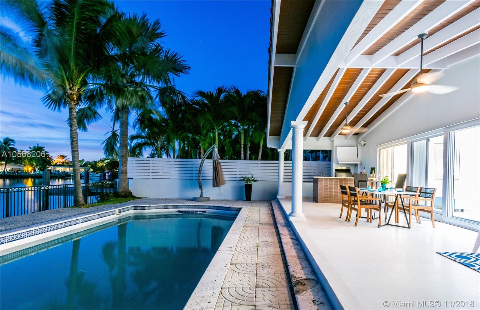Have your own slice of heaven in Surfside with this serene, open ocean access modern pool home on beautiful Point Lake, where you can keep your boat docked right at home! Take in gorgeous sunsets from your expansive covered patio w/multiple entertaining and relaxing areas. Stacked sliding glass doors go from wall to wall in the spacious living area allowing you to continually appreciate your backyard water haven. Updated for today?s contemporary living, this Mid-Century Modern home features open flow living, dining, den and kitchen with stainless steel appliances. The large master bedroom and bath suite have ceiling to floor glass doors to the patio. 3 guest bedrooms and baths are separate for ultimate privacy. A glamorous entry hall welcomes from the covered front porch.