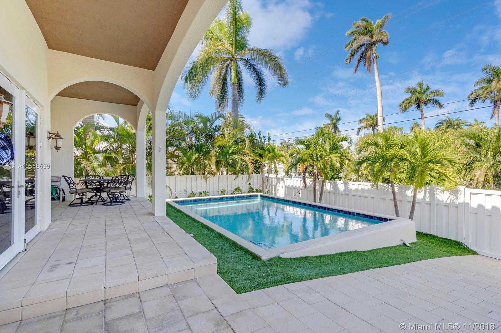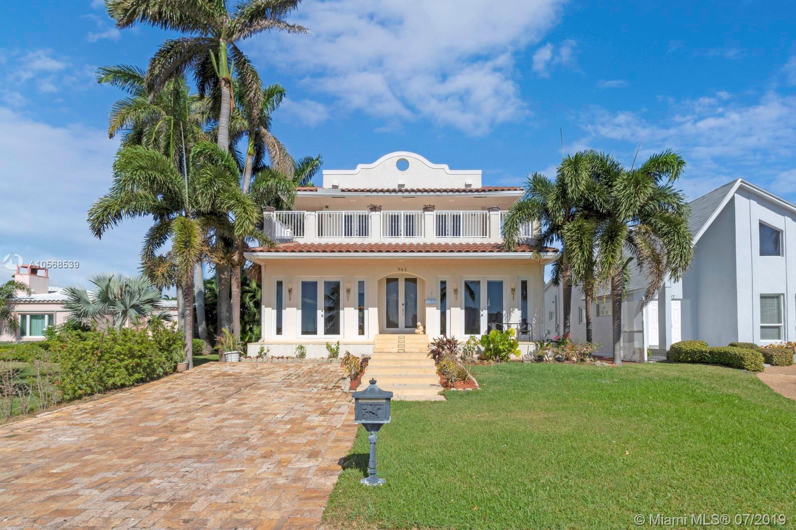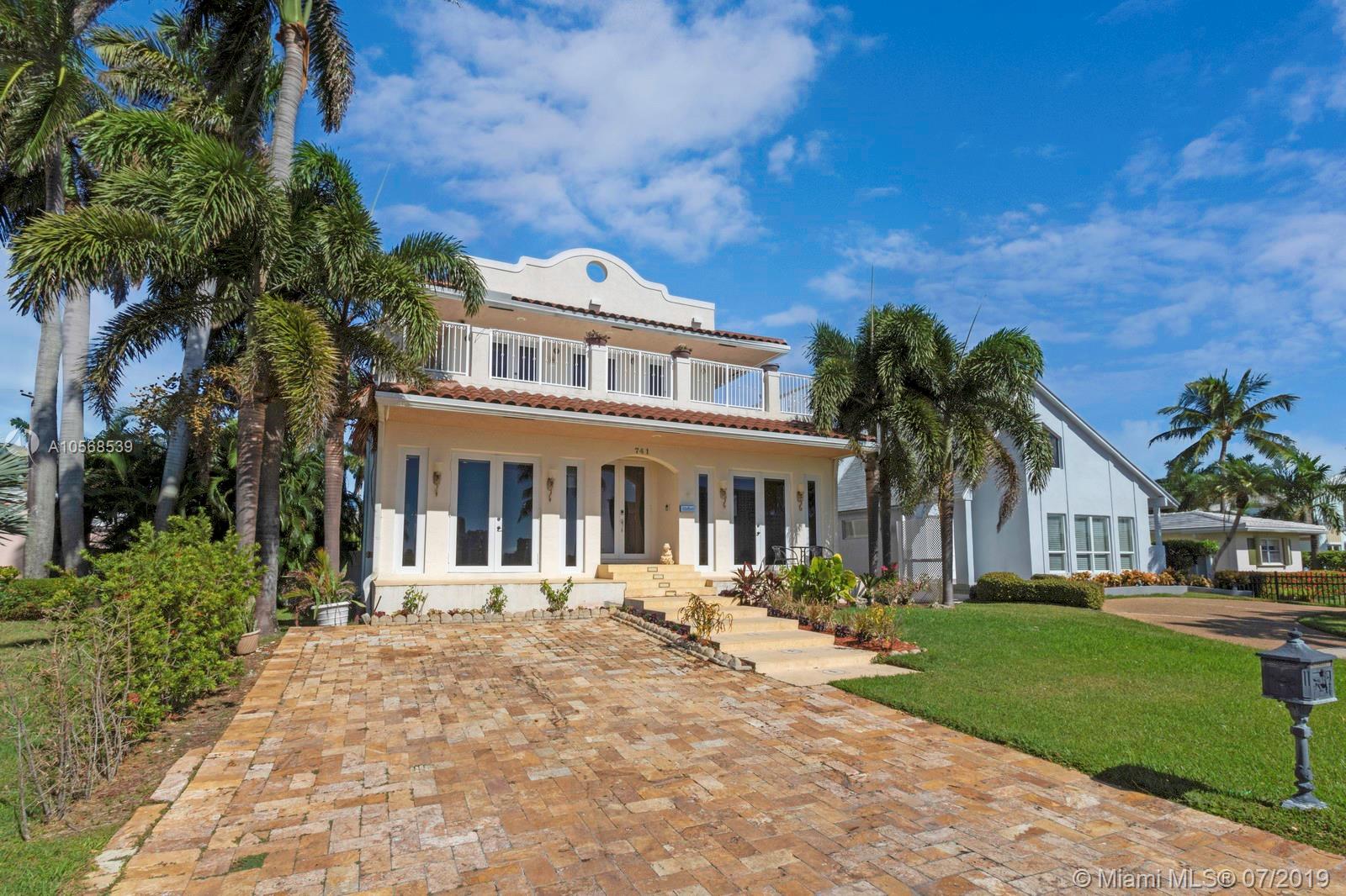 Magnificent estate. Newer Mediterranean masterpiece home with ocean access features a total of 5 Bedroom, 5 1/2 Bath, and Beautiful oversized salt water pool w/patio area. 2nd Floor balcony is approx. 570 sq. ft. Spacious Kitchen features granite countertops. Approx. 12" high ceiling. Great room has large 177" projector screen with wet bar. Master suite has sitting area with lots of windows, beautiful water views and a wrap around balcony. Impact windows and doors. Access to roof deck from 2nd floor is approx. 2,100 sf. with endless water views. 3 houses from the intercostal waterways Minutes from the beach. Dock is leased by the city for $500.00 / year.