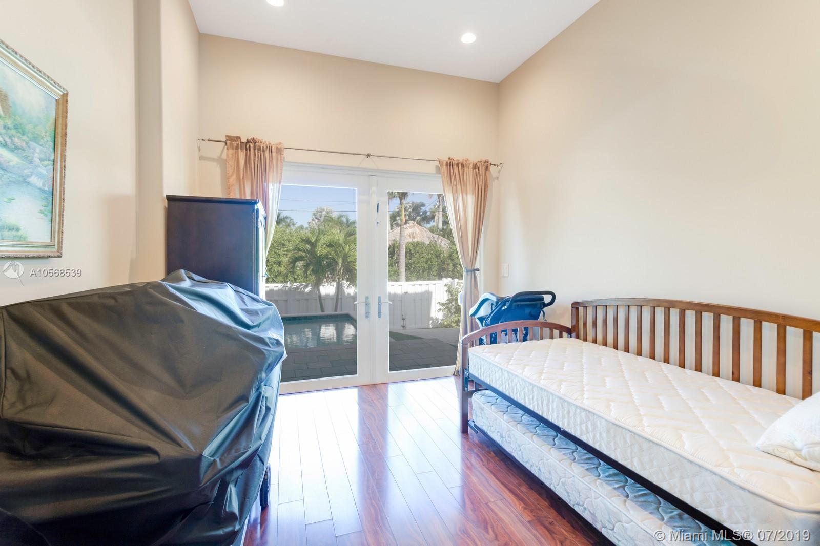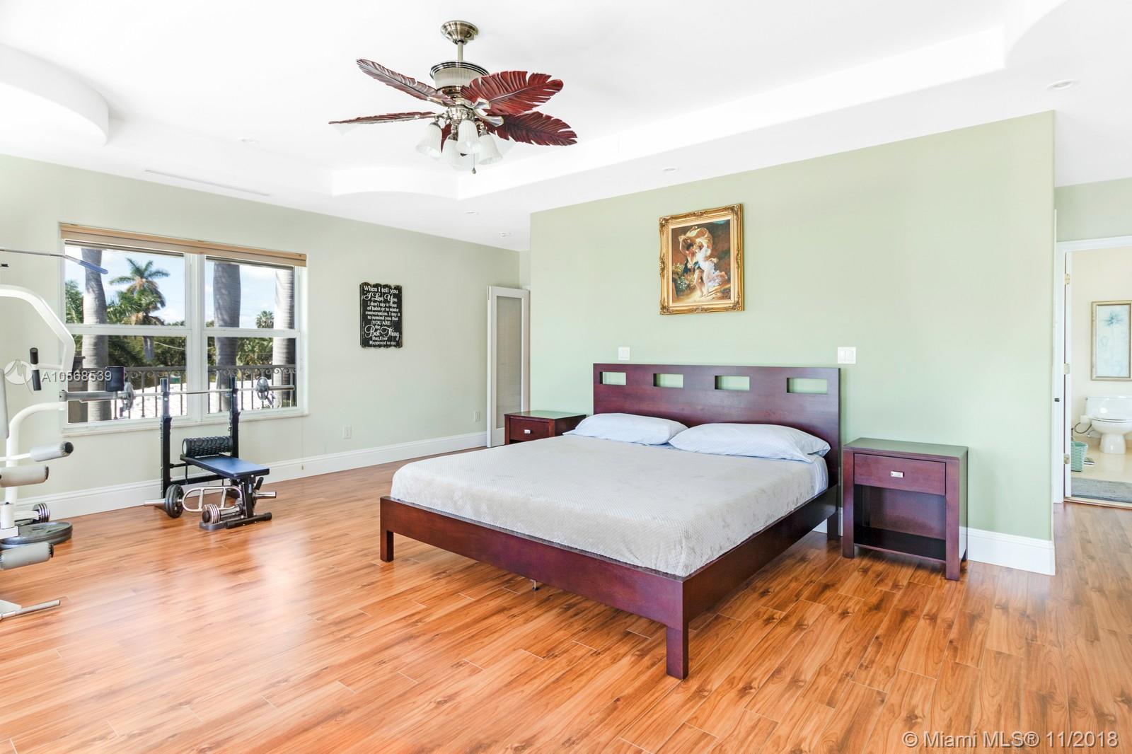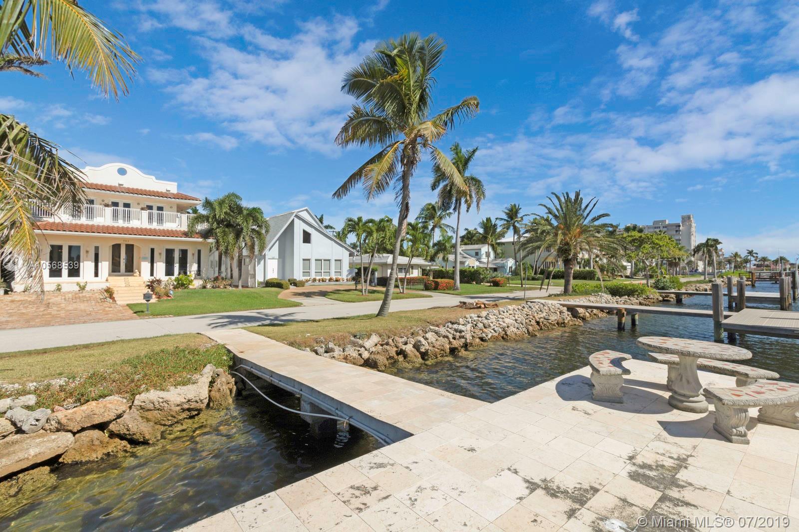 Magnificent estate. Newer Mediterranean masterpiece home with ocean access features a total of 5 Bedroom, 5 1/2 Bath, and Beautiful oversized salt water pool w/patio area. 2nd Floor balcony is approx. 570 sq. ft. Spacious Kitchen features granite countertops. Approx. 12" high ceiling. Great room has large 177" projector screen with wet bar. Master suite has sitting area with lots of windows, beautiful water views and a wrap around balcony. Impact windows and doors. Access to roof deck from 2nd floor is approx. 2,100 sf. with endless water views. 3 houses from the intercostal waterways Minutes from the beach. Dock is leased by the city for $500.00 / year.