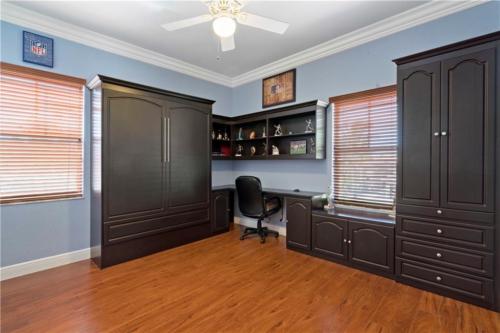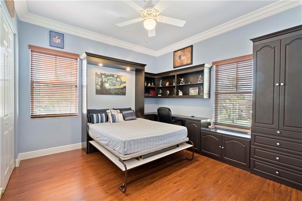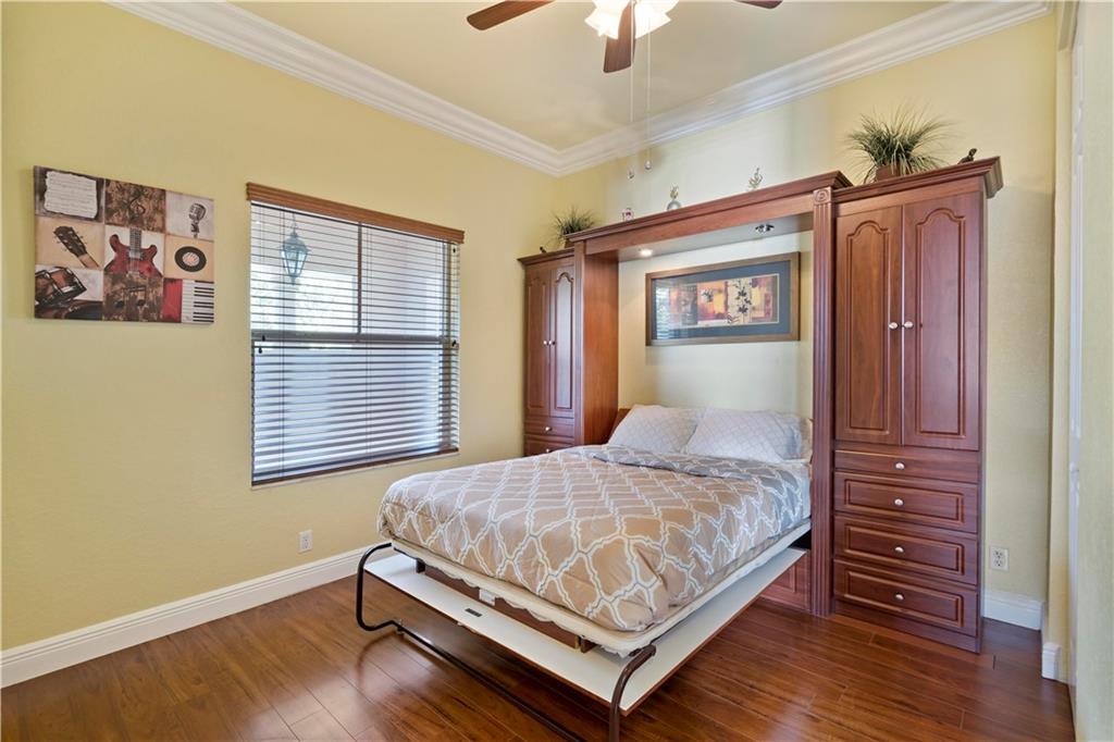 Happiness is living in Bayside Estates – this beautiful 5/3/3CG Catamaran Model nestled in the gated community of Parkland Isles features, impressive soaring 23 feet ceilings in the living and dining room areas. Open Floor plan has a huge Family room adjoining kitchen and breakfast nook. Media room easily converts back to 5th bedroom. Master bedroom includes sitting area that leads to private oversized balcony with wide pool view. The master bathroom has a roman tub with jacuzzi and separate enclosed dual shower. Three custom bedrooms all have built in Murphy beds. Enjoy your own private tropical oasis that includes pool, Lanai and extended patio area, great for entertaining. Upgraded security System, Accordion shutters, impact window and panels. Home Warranty transferrable.