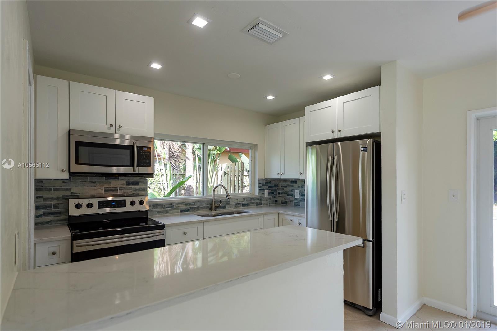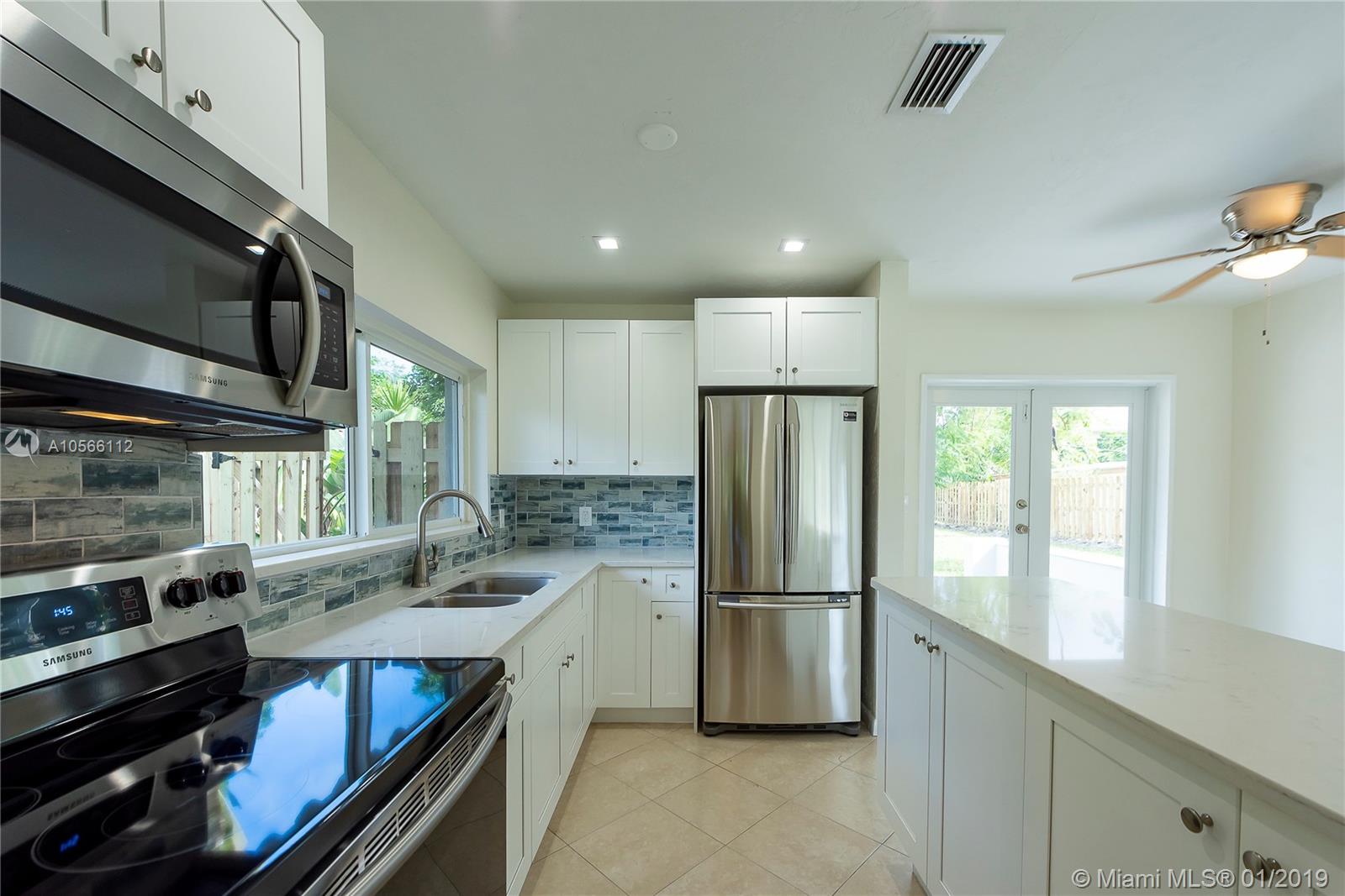 Beautiful fresh Florida stile Home, Completely updated, Remodeled kitchen with bright colors, white quartz countertops and new stainless still appliances, living area with wood burning fireplace. floor has Tile through-out House is in Excellent condition with brand new impact windows and doors. Bedrooms with impact windows and new mirror closets doors, bathroom was redone completely it has combination of shower-tub, Huge fenced backyard and room for a pool. the fence was also recently installed. Laundry room with the hook up for washer. Beautiful new landscaping with auto-sprinkles