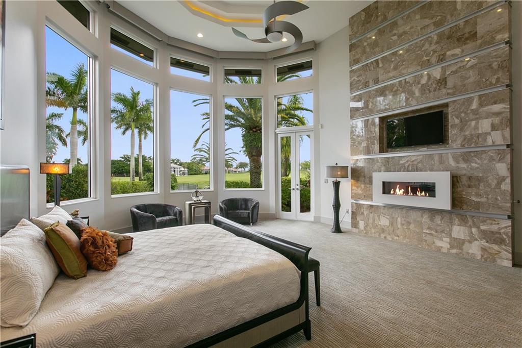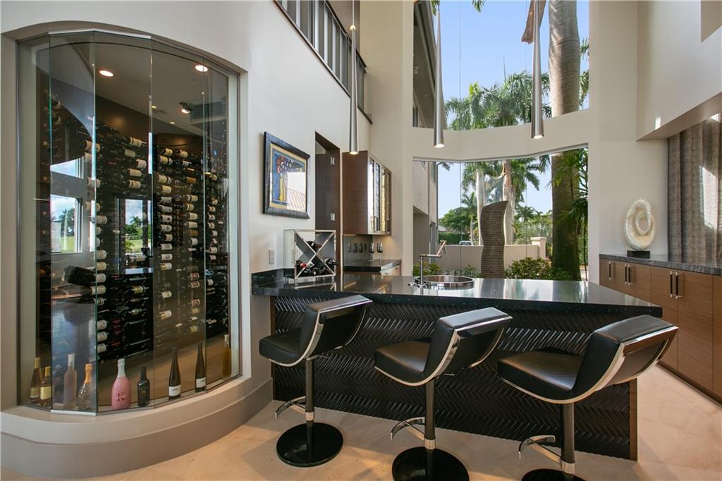 Right off the pages of a design magazine! Magnificent modern 5BR Ensuite+Office/6+1BA/5CG pool home w/ guest wing offers sprawling panoramic golf & lake views on a tremendous 30K+sf lot in the esteemed TPC Golf community of Eagle Trace (there are NO golf equity fees). Completely remodeled in 2012! Perfectly positioned on the 1st hole! This truly is a one-of-a-kind property offering an open floor plan, chef's kitchen w/ gas cooking, full caterer's kitchen, glass wine cellar, media room, gym. 25' ceilings, floor-to-ceiling windows, two fireplaces, impact windows/doors & large motorcourt. 1st flr master suite. Exquisite finishes were hand selected by an esteemed interior designer. Resort-style pool & spa area, summer kitchen, fire pit & expansive loggia. Private, on a cul-de-sac. Low HOA​​‌​​​​‌​‌​​​​‌‌​‌​​​​‌‌​​‌‌​​‌‌ fees