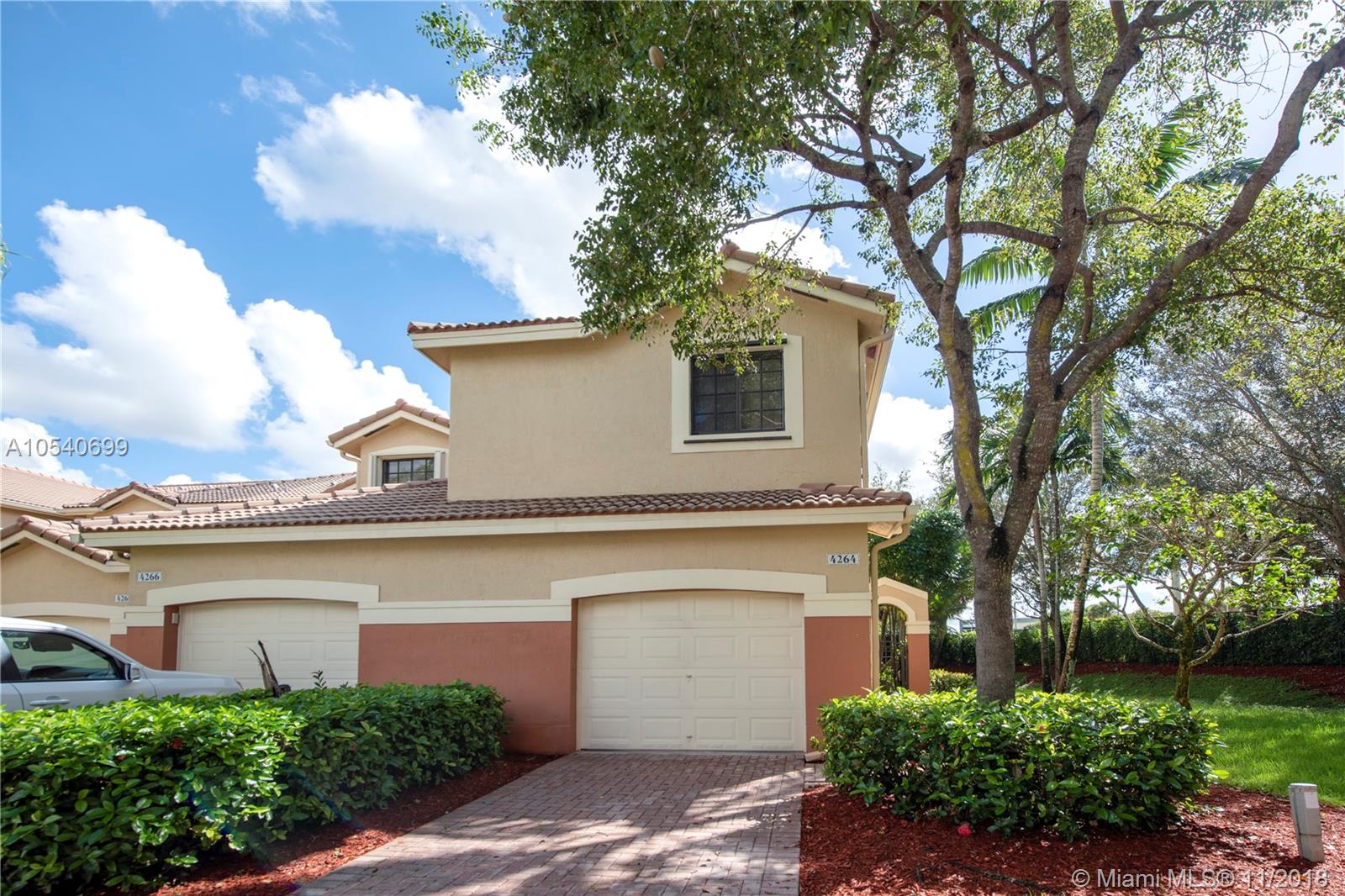Spacious, well-maintained and rarely available 4 bedroom 2 1/2 bath corner townhome in gated community of Courtyard at the Grove with 24/7 security. Features tiled floors in the living and dining areas, carpet on staircase that leads to a large master and three other bedrooms upstairs with good closet space. Private patio and front porch with nice landscape. Close to highly rated local schools. Pet friendly and well-managed HOA community. Nice clubhouse and pool area.
