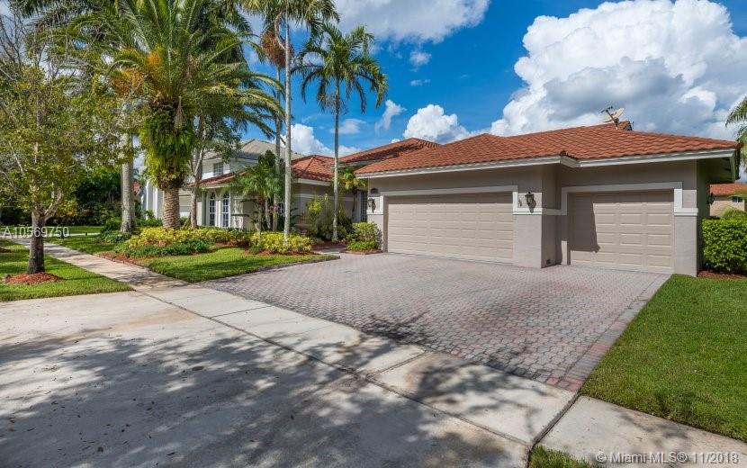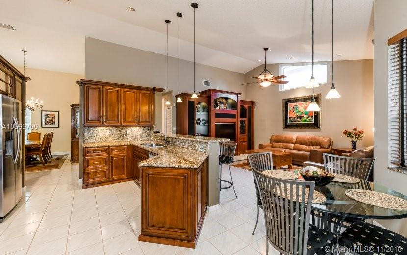 This impeccably maintained single story pool home with an open floor plan is one of only 39 homes located in the gated and guarded community of Sunset Isles within Silver Lakes , Pembroke Pines . Solid mahogany 8 foot entrance doors open to 4 bedrooms and 2.5 bathrooms with volume ceilings to 16 feet, an updated kitchen which includes granite counters, solid wood cabinetry, and high end stainless steel appliances including a wine cooler. The master bedroom has a huge walk-in closet with a custom built closet system. The master bath has been remodeled to include Italian marble flooring, solid wood and granite vanities and a walk-in shower with frame-less glass. The home has a Class-A wind rating with hurricane impact protection on all openings, a newer metal roof.