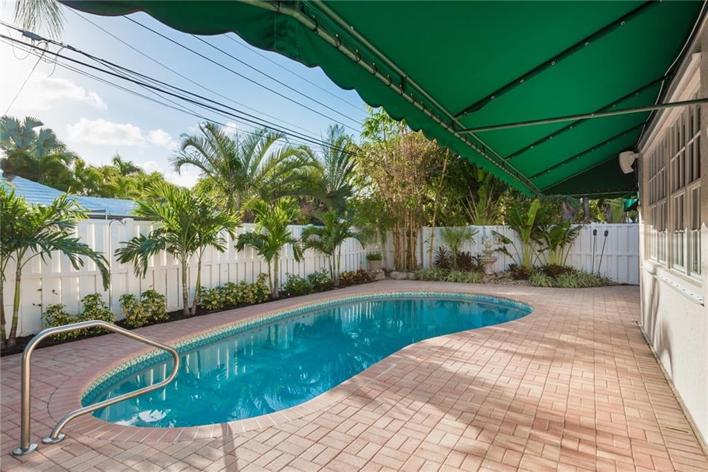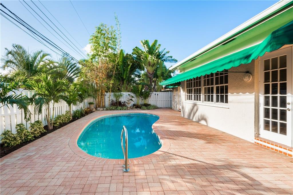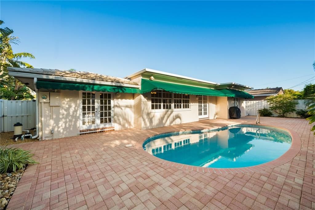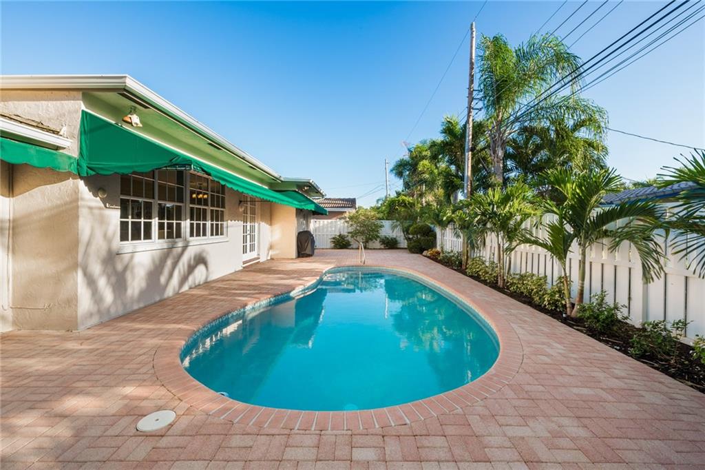 Come see this GORGEOUS 3/3 single family pool home in Fort Lauderdale. Brand New Engineered Wood Flooring throughout entire home. All NEW stainless appliances in kitchen with granite countertops & NEW cabinets. Fully updated bathrooms with seamless glass shower doors. Backyard is a tropical OASIS of palm trees & bubbling fountains surrounding a sparkling pool that was just resurfaced with diamond brite, Fresh paint inside out, driveway & patio pavers redone & sealed. Even the garage has NEW durable epoxy flooring & a second refrigerator. Open floor Plan, large master with French doors leading to the NEWLY landscaped backyard, excellent location within blocks of shopping, restaurants & the BEACH. The attention to detail has left no stone unturned. MUST SEE!