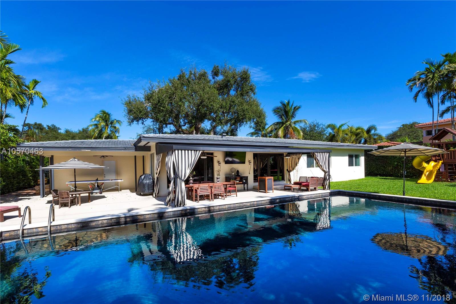 Stunning Retreat on a quiet St. In the middle of the Gables. Completely updated and incredibly charming, this 3-bedroom, 2.5-Bath Ranch offers you space, elegance and comfort, within walking distance of the Riviera Golf Course, the Coral Gables Library and the Youth Center. Impact Windows and Doors, Gas Stove, Sub Zero, Marble Counter-tops, Hard wood cabinetry, Hard wood Floors and a fabulous covered patio overlooking the 20x40 Black Marcite pool that absorbs the sun’s heat and extends swimming season year-round. This home is perfect for entertaining or living in stay-cation mode. Wont Last.