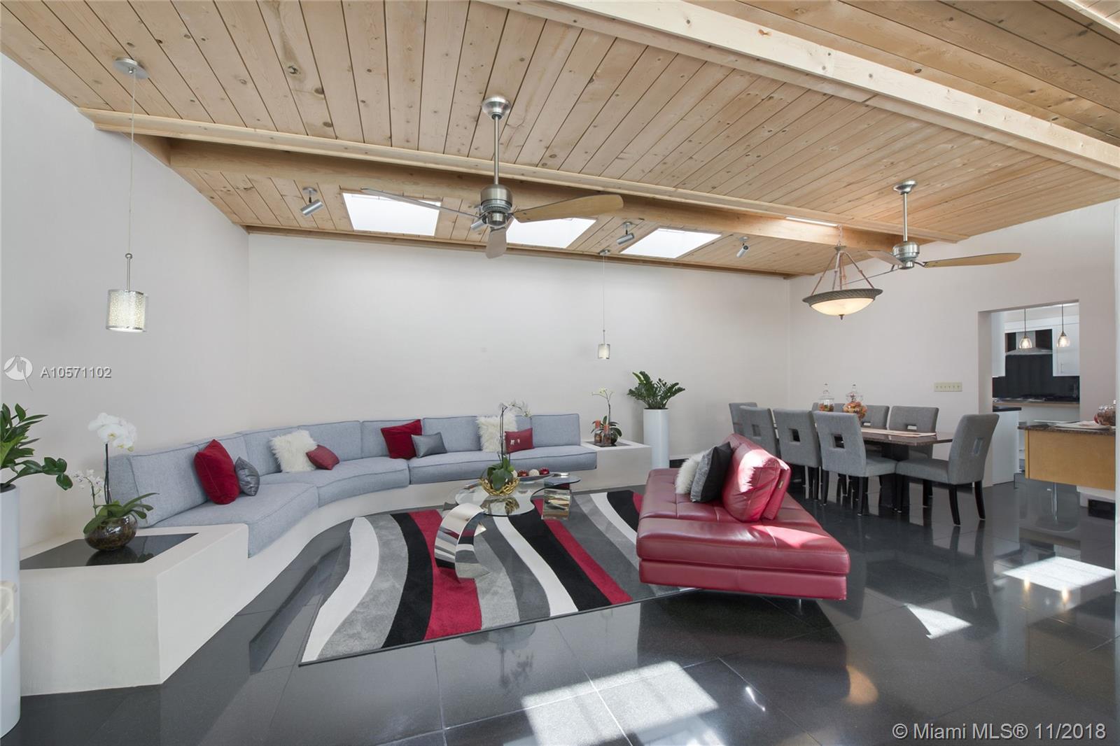 4Bed/3Bath Contemporary Gem tucked away on a quiet cul de sac at a higher elevation in South Grove. The living room and kitchen overlook the beautiful resort style pool and patio area. This home is an entertainer's dream that is not only impressive but comfortable. Updated kitchen with high-end stainless steel appliances, gas range, double oven, cooking island, and updated cabinets with plenty of storage and lighting. 3 bedrooms upstairs and 1 bedroom downstairs. The Master Suite includes a generously sized walk-in closet with an exit to the pool area. Relax in the master bath's jacuzzi tub. Jack and Jill bedrooms upstairs, with in-law's quarters downstairs. Tasteful landscaping with a modern appeal. (Walk to 2 blocks to see the sunrise over Biscayne Bay).