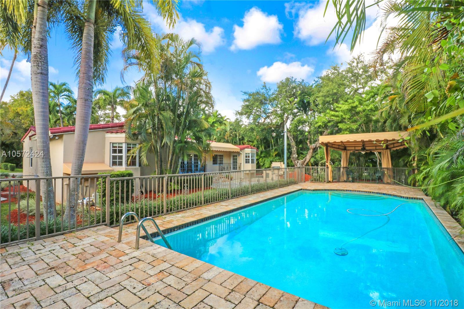 Prime Location! Charming and spacious 3 bed 3 bath pool home with 1 car garage sitting on an oversized Coral Gables lot (13,100 sq ft). Features formal living room with vaulted ceilings and exposed wood beams, adding to the character of this beauty. Formal dining and family room, a beautiful eat-in kitchen nook overlooking the large backyard and patio areas leading out to a good size salt-water pool; perfect for entertaining! Impact windows throughout give natural bright light, good size bedrooms w/ walk-in closet in master, and the wooden floors further accentuate the Coral Gables Charm. Conveniently located less than a mile away from The Biltmore Hotel and the newly refined Streetscape of Miracle Mile, for all your fine dining and shopping/entertaining experience. Truly a must see.