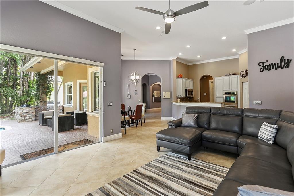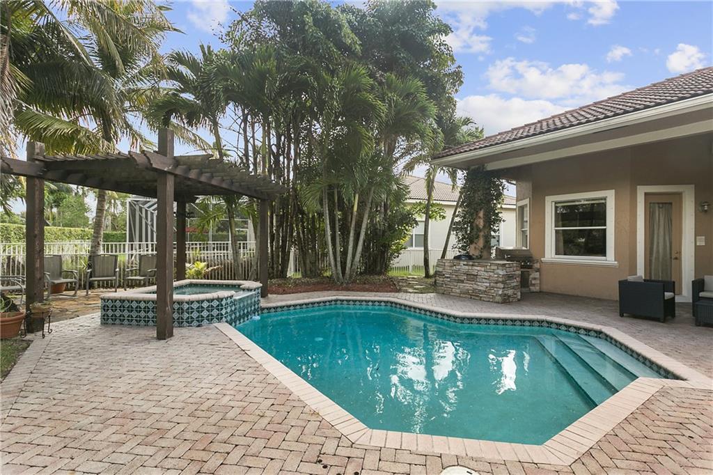 Beautiful 4/3 waterfront home with picture perfect backyard oasis. Relax by the pool or in the hot tub while dinner cooks in the outdoor kitchen. Home boasts volume ceilings, triple split floor plan, s/s appliances, granite, newly painted, new carpeting, his & hers walk in closets, walk in pantry, crown molding throughout, herb garden, fenced backyard, surround sound inside & out, TV outside, pergola, new light fixtures & fans, 3 car garage, built-ns in the garage, and much much more. This home is truly move-in ready! Quiet location in Wyndham Lakes - Bay Pointe. Excellent schools.