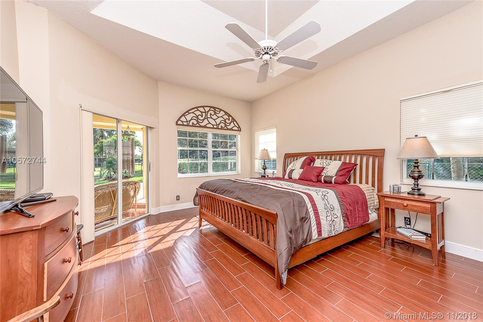 Rare Find!One story pool home in the heart of Cooper City.This 4 Bedrooms 2.5 Bathroom home Located in the small community of Stirling Village on a quiet no-through street. Beautiful corner lot with lovely pool/patio and spacious yard on a peaceful lake. New ceramic wood-like tile in main living areas and master suite, updated master bath with wood cabinets, granite counters, separate shower and roman tub. Floor plan features a split bedroom design, formal living-dining area, kitchen opens to family room, Large kitchen for easy entertaining. You will love the new Samsung 4 drawer black stainless steel refrigerator! Newer top of the line window treatments. All closets have built ins for great storage. Interior laundry room with sink. Pool diamond bright a year ago. A rated schools.