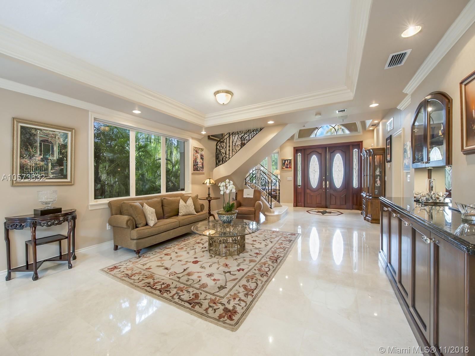 A study in elegance, this incomparable Mediterranean estate built in 1998 features architectural elements of a caliber that reach design greatness. The graceful curving staircase, designed by skilled craftsmen and artisans, is made of hand forged iron and polished brass railings. Among the most exquisite of its features are the Saturnia marble floors, inlaid marble accents, coffered ceilings, keystone accents, elaborate moldings, and flowing entertainment areas. This 3-bedroom and 3-bath residence with garage and pool exudes a grandeur that signals a return to the age of elegance.