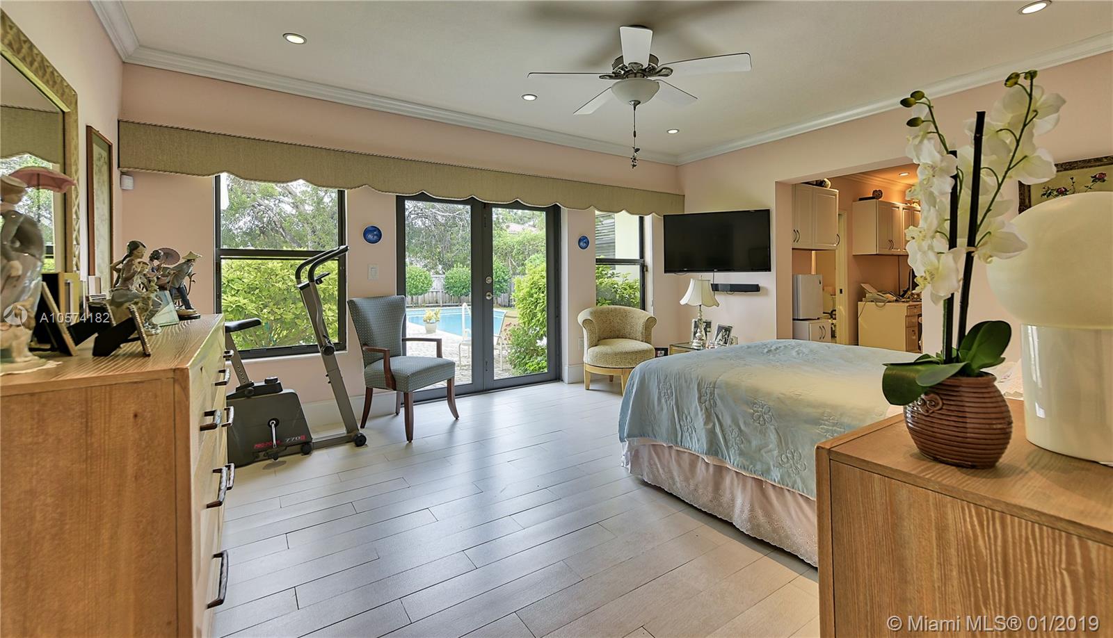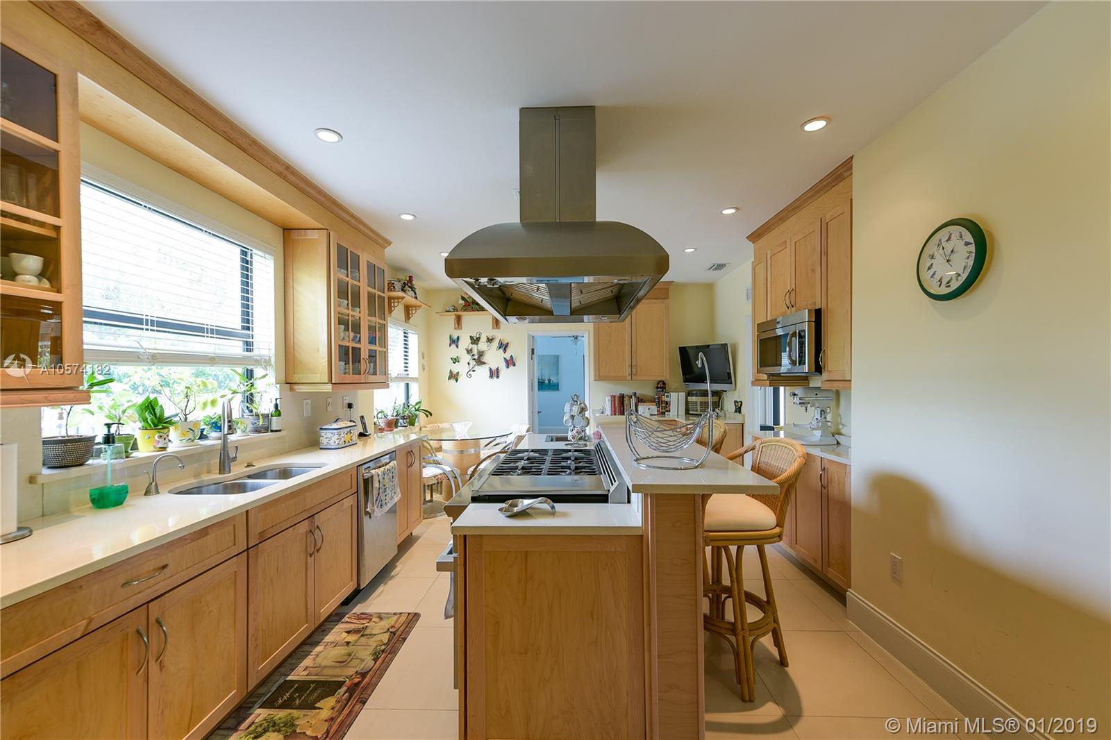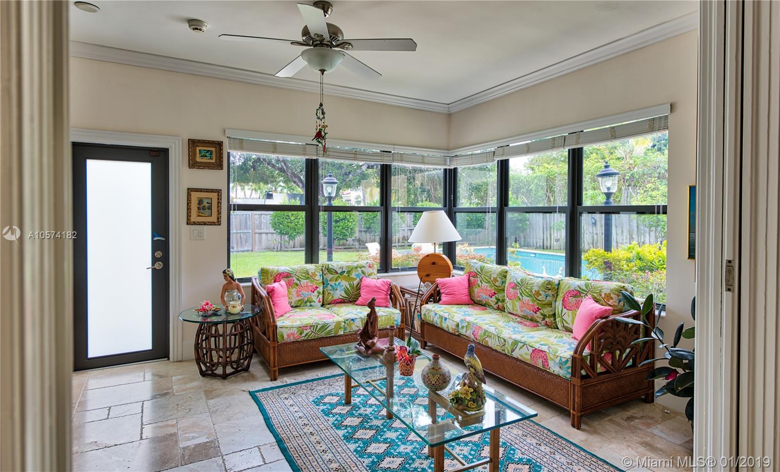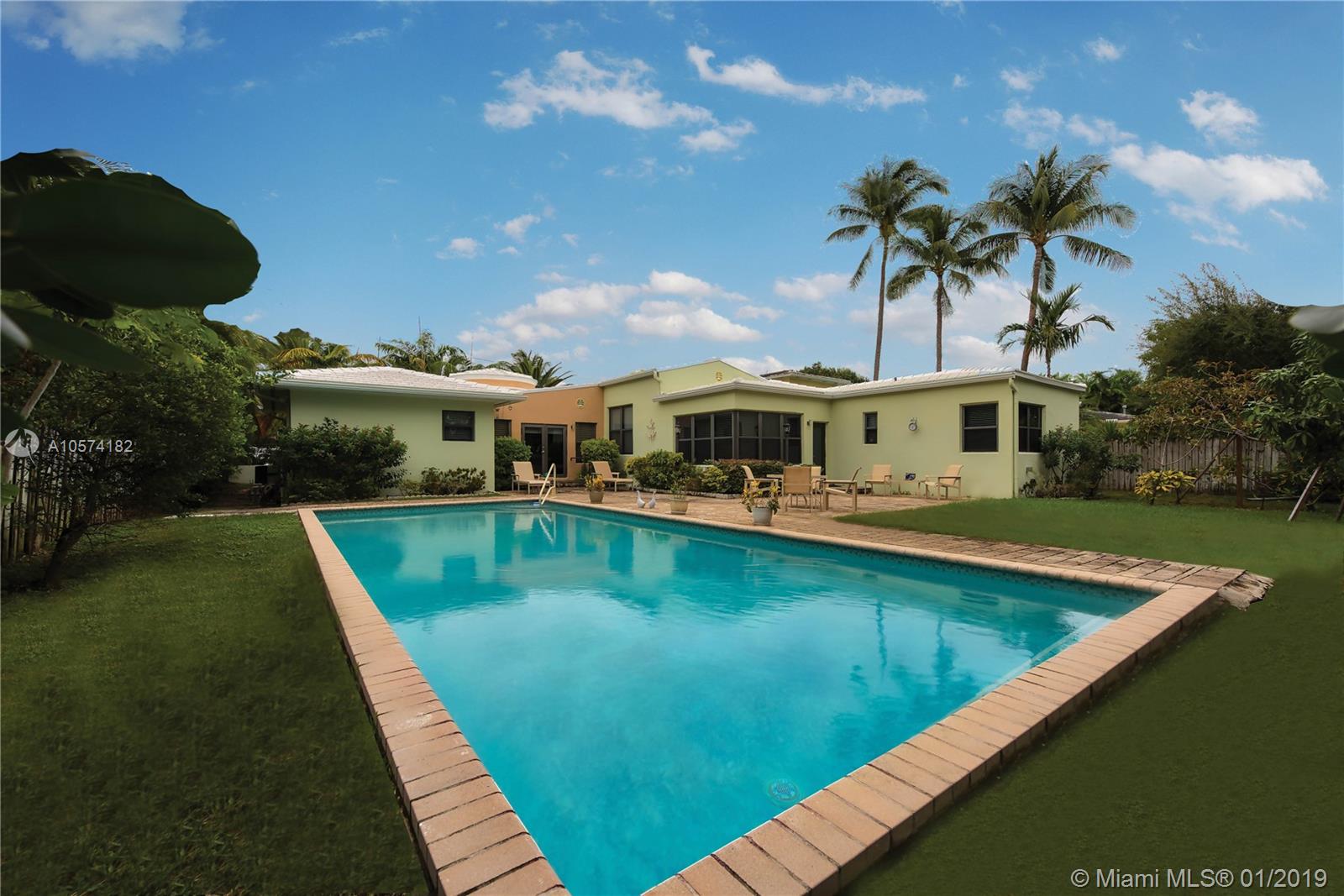 Simply Fabulous! Immaculately restored dream home flowing from street to street, on an oversized lot. New roof, new heated pool, new kitchen, impact windows and doors, automated entry gates, generator, and more. Beautiful terrazzo floors complement the formal living and dining room, w/high tray ceilings & cove lighting. The eat in island kitchen w/new 6 burner gas range w/ grill component is very spacious as well as the ample master en-suite which opens to the pool and office/dressing area. Additional rooms include, Florida room, 2 en-suite bedrooms, garage with laundry room, extra fridge, large back yard, totally fenced, etc. This elegant, ample and comfortable home is in pristine move in condition, to see it is to love it.