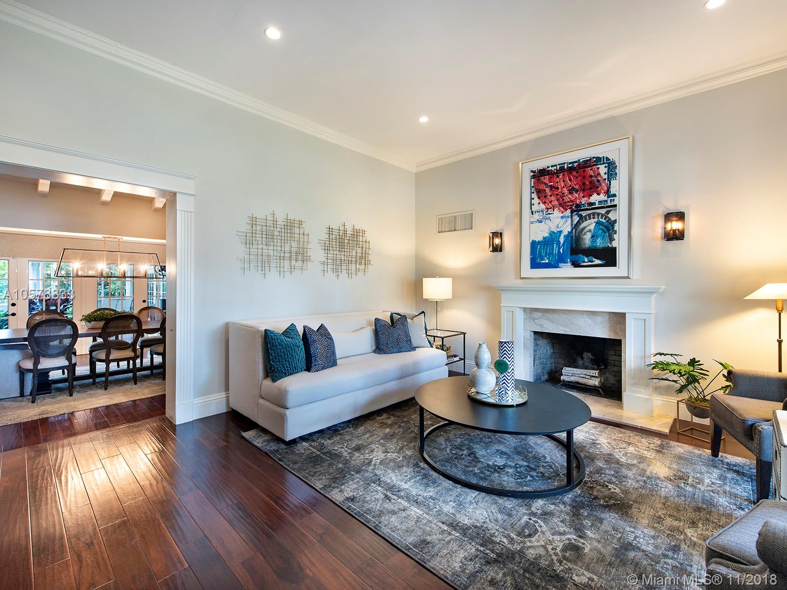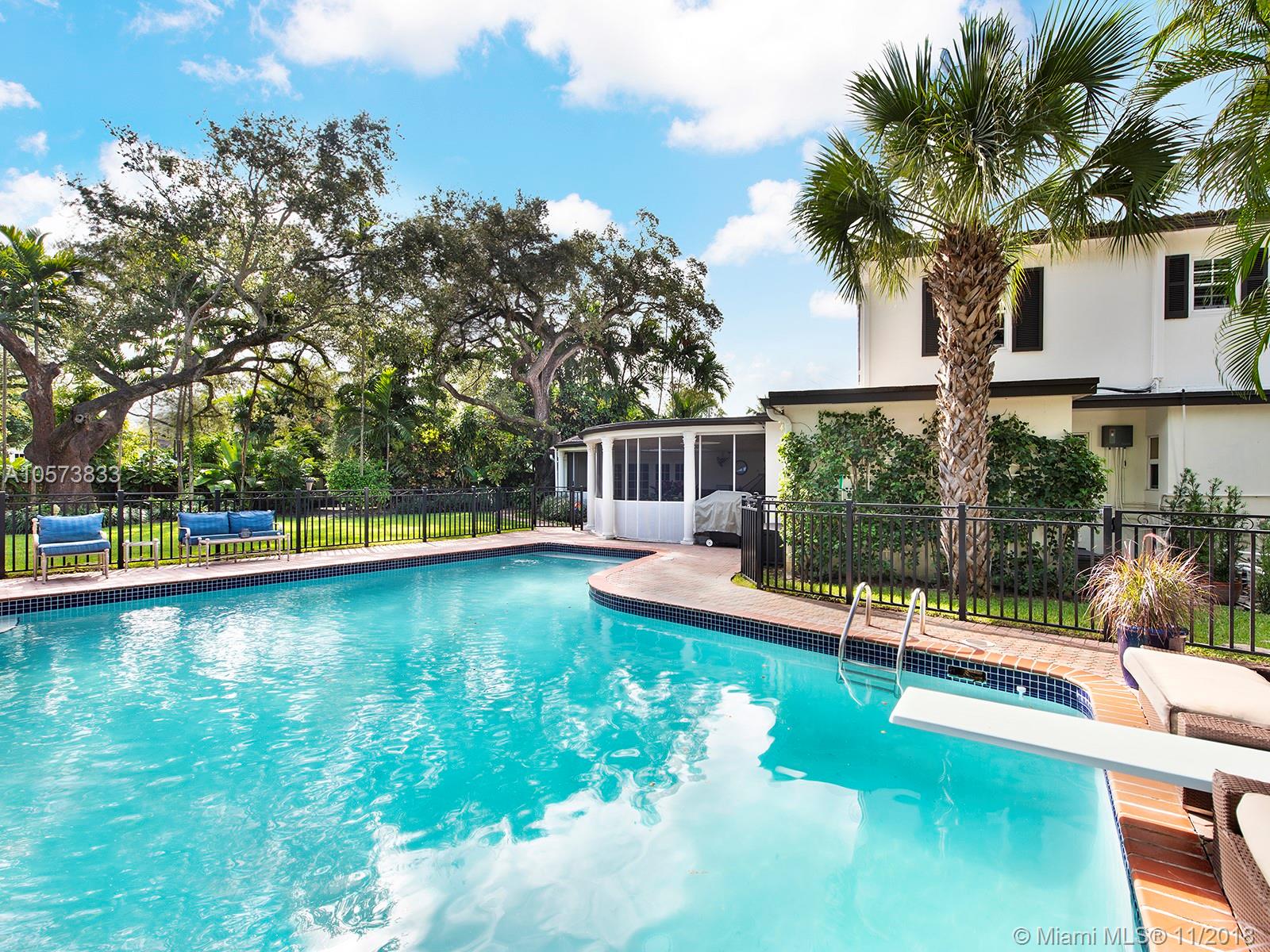 This beautifully renovated 1939 Miami Shores Estate is a rare find on a ¾ acre lot, a priceless mature oak tree canopy and high-end finishes. Formal Entry, dramatic circular staircase, 10’ ceilings, wood burning fireplace, plaster tray ceilings, exuding elegance at every turn. Two possible masters on the main level, 2 bedrooms sharing a bath upstairs, 2 family rooms, and office. 3-car garage and indoor laundry room, huge covered patio, large pool, and basketball court are just a few of the amenities that make this home so special. The seller has spared no expense or attention to detail updating this home. Excellent for entertaining and a Must See to appreciate. Impact windows and full house mitigation.