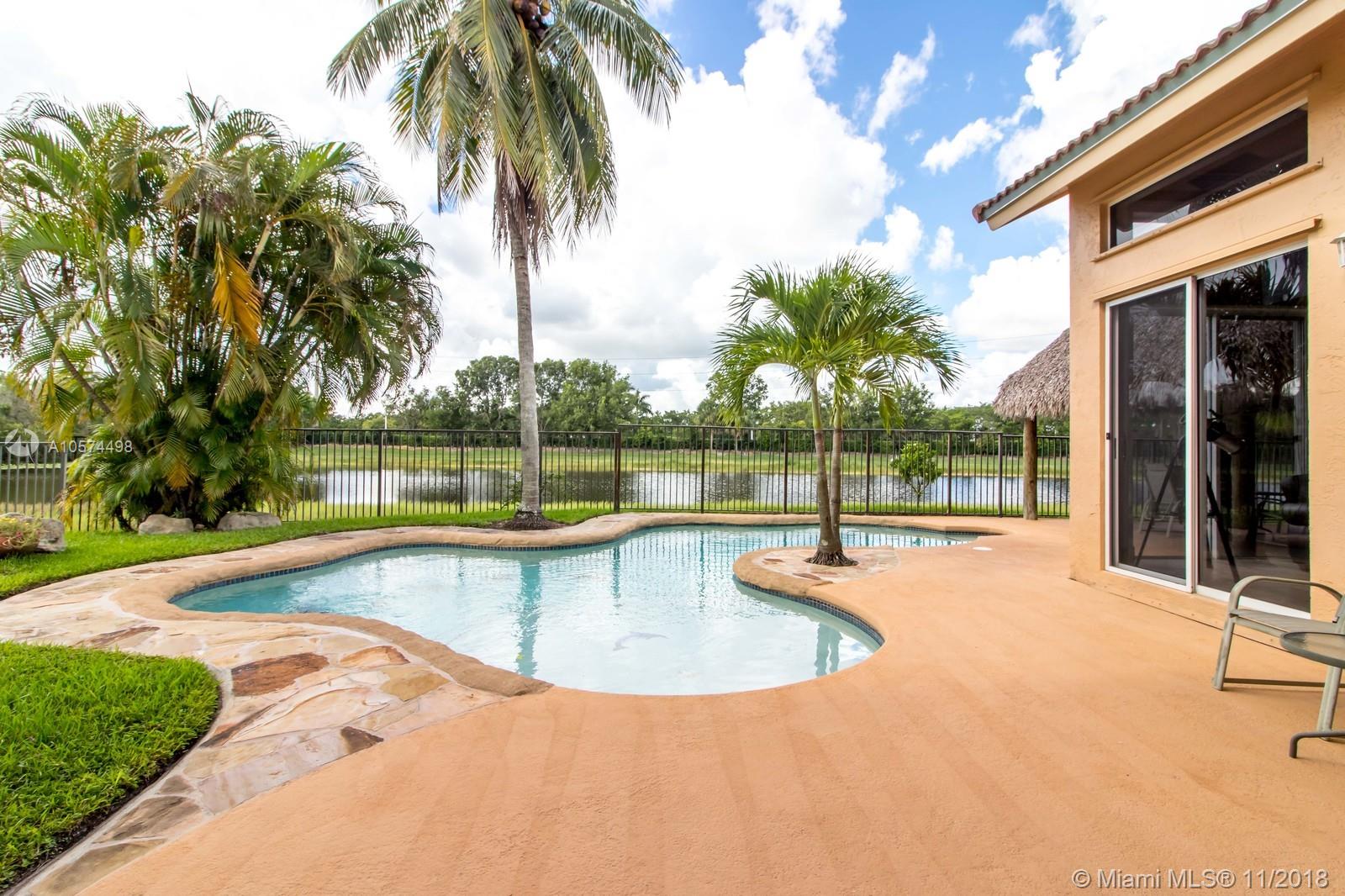 Enjoy this BEAUTIFUL HOME in prestigious Weston Hills Country Club. This stunning home has been freshly painted in a neutral color. It features 4BR+Den (Easy to convert into 5thBR)/3 BA (including a Cabana Bath and Jack and Jill Bath), High Ceilings and lots of natural light. The open floor plan provides fabulous water views from all main living areas. Beautiful travertine floors and updated kitchen with wood cabinetry and granite countertops and SS Appliances. This magnificent waterfront home boast lushly elegant landscapes from front to back & resort style fabulous lagoon-style pool w/private tiki-hut for entertaining.