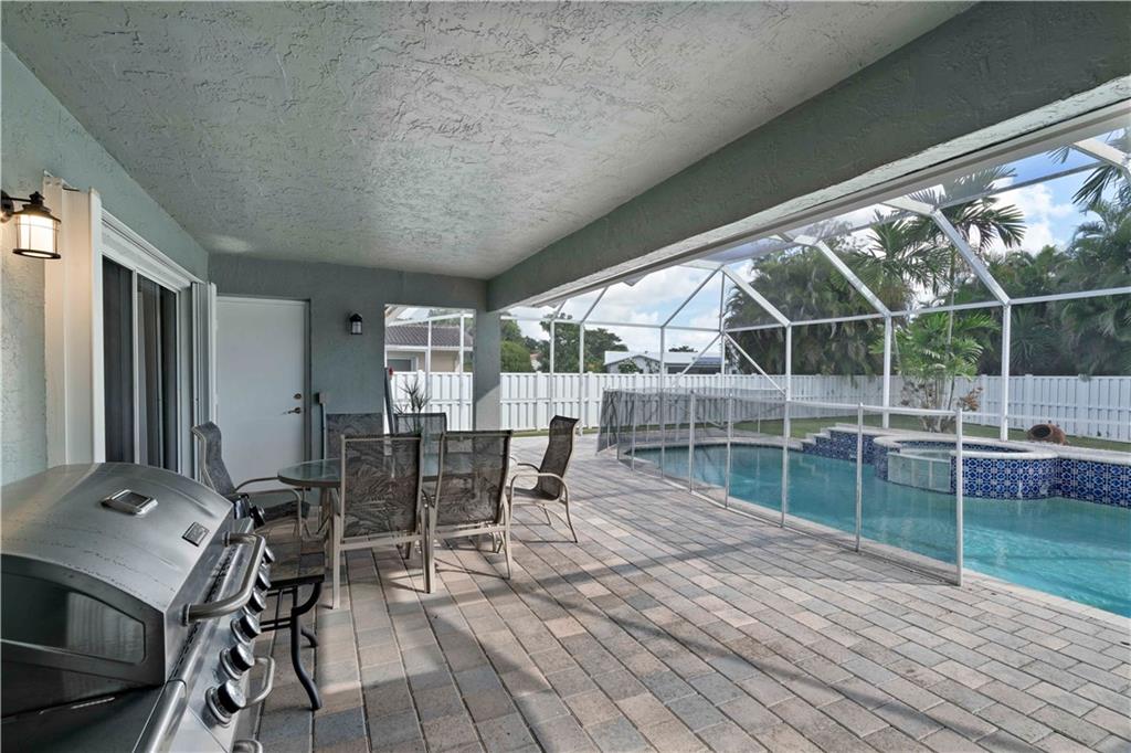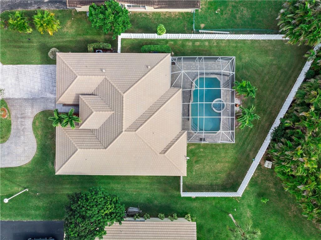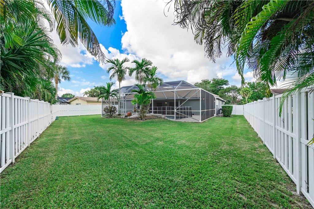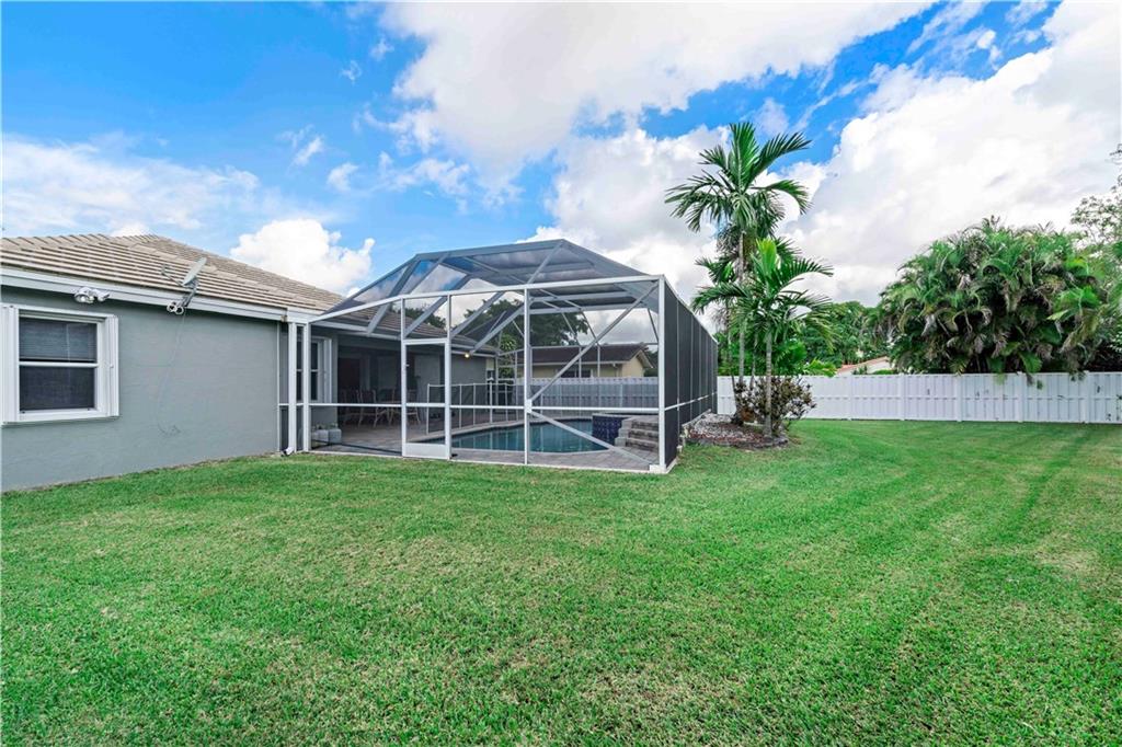 One of the newest homes (built in '96) in the established tree lined neighborhood of Ramblewood. 4 large bedrooms, split bedroom plan, gorgeous kitchen with granite counters, stainless steel appliances, under counter lighting, raised snack counter plus large eat in area. Family room, living room and master bedroom have sliders leading to covered paver patio, screened pool, spa and big backyard with white PVC fence. New wood flooring, brand new roof, fresh paint inside and outside, accordian hurricane shutters, large paver circular driveway and 2 car garage. No HOA. Make this very special home yours!