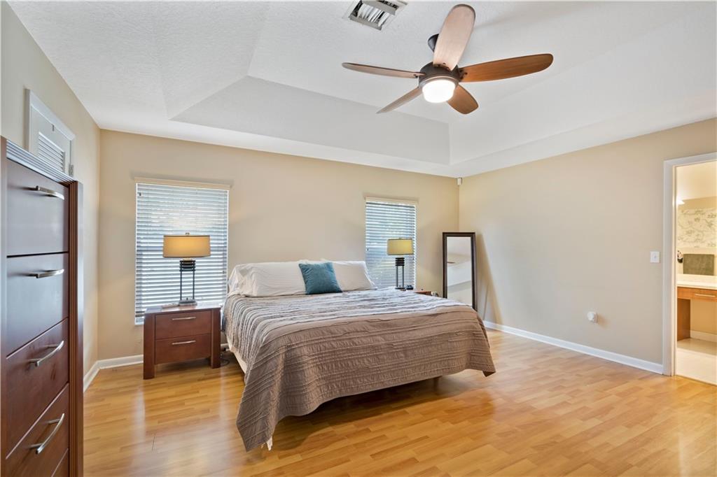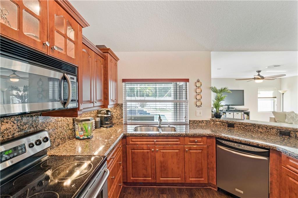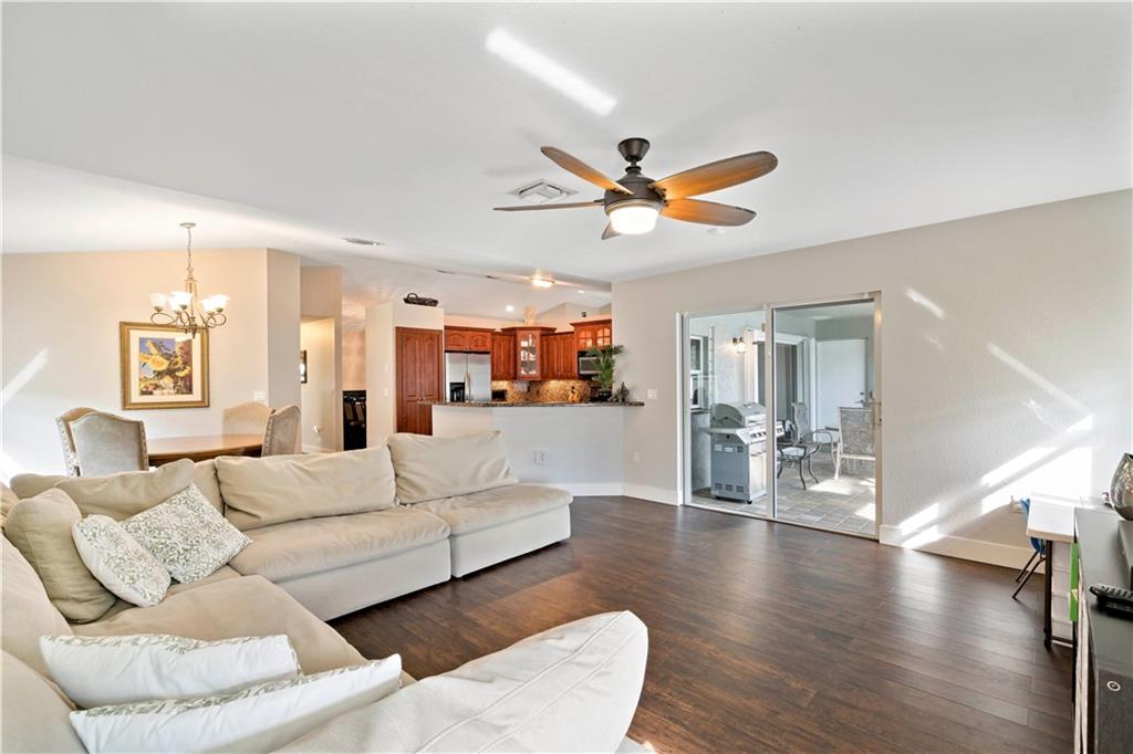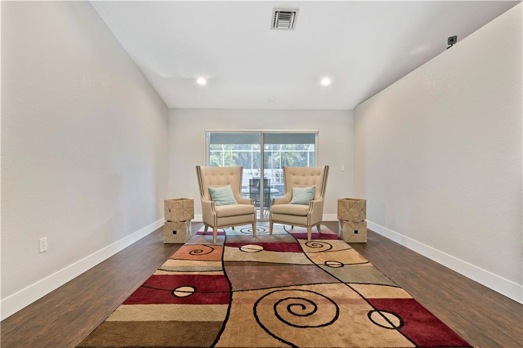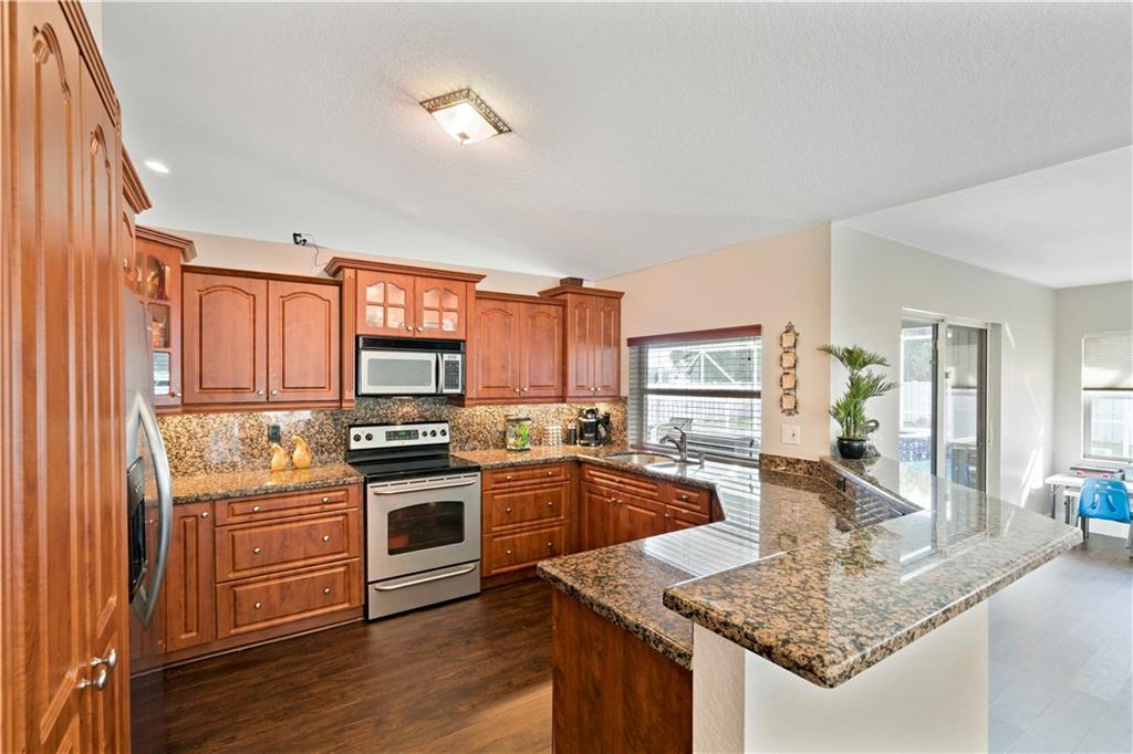 One of the newest homes (built in '96) in the established tree lined neighborhood of Ramblewood. 4 large bedrooms, split bedroom plan, gorgeous kitchen with granite counters, stainless steel appliances, under counter lighting, raised snack counter plus large eat in area. Family room, living room and master bedroom have sliders leading to covered paver patio, screened pool, spa and big backyard with white PVC fence. New wood flooring, brand new roof, fresh paint inside and outside, accordian hurricane shutters, large paver circular driveway and 2 car garage. No HOA. Make this very special home yours!