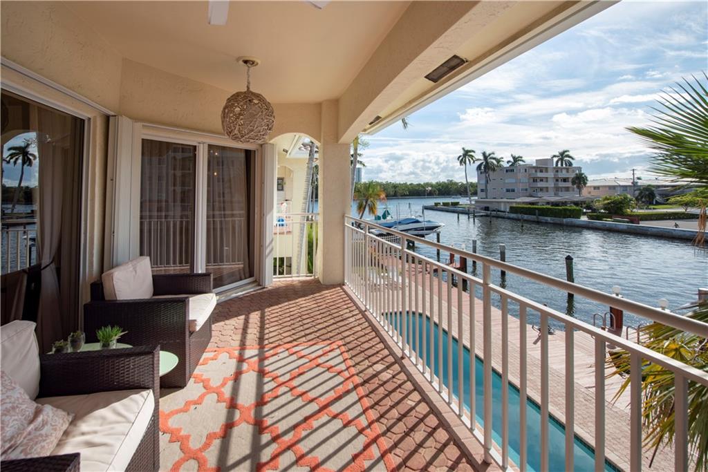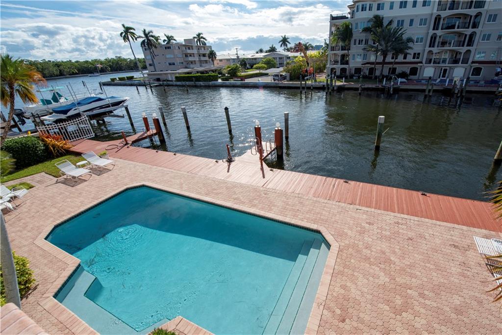 Tenant has now moved so now it's easy to show. Priced to sell. Seller says SELL. OWNER FINANCING AVAILABLE. Beautiful 2nd floor waterfront courtyard townhome condo with 2 bedrooms + a bonus room, ideal for office/den. Overlooks Intracoastal & Birch State Park. Only 4 units in charming complex just off the point. Private DOCK & 1-car garage. Fantastic updated kitchen with granite counters & Miele & Viking appliances. Open and airy with vaulted ceilings. Walk-in closet. Jacuzzi tub + shower in master bathroom. Spacious balcony overlooking the heated pool and great views of the Intracoastal waterway. Minutes to the beach, shopping & dining. Very desirable Bayview School District.
