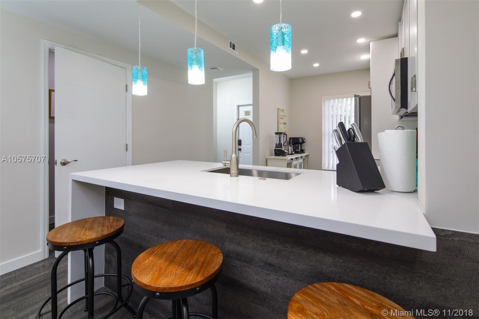 46 Key West is a stylish and beautifully renovated 2 bedroom, 2.5 bath condominium located in the coveted Coconuts area of Weston. Ownership comes with membership to the Bonaventure Country Club. The completely updated kitchen is a chef’s joy with ample storage. Stainless steel appliances and pristine white cabinets showcase the ice-blue tile backsplash and pendant lights over the sink. This lower level of 46 Key West is complete with a convenient half bath and the stacked washer and dryer. Exit the rear sliding glass door and find a covered brick patio, complete with a bistro dining table for two.Upstairs you have 2 master bedrooms with spacious closets.