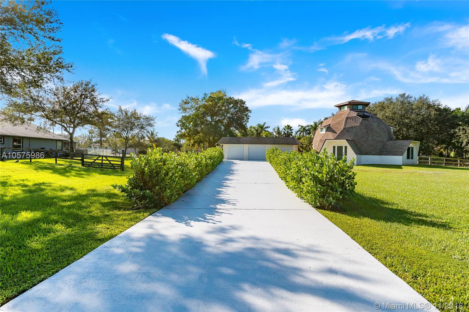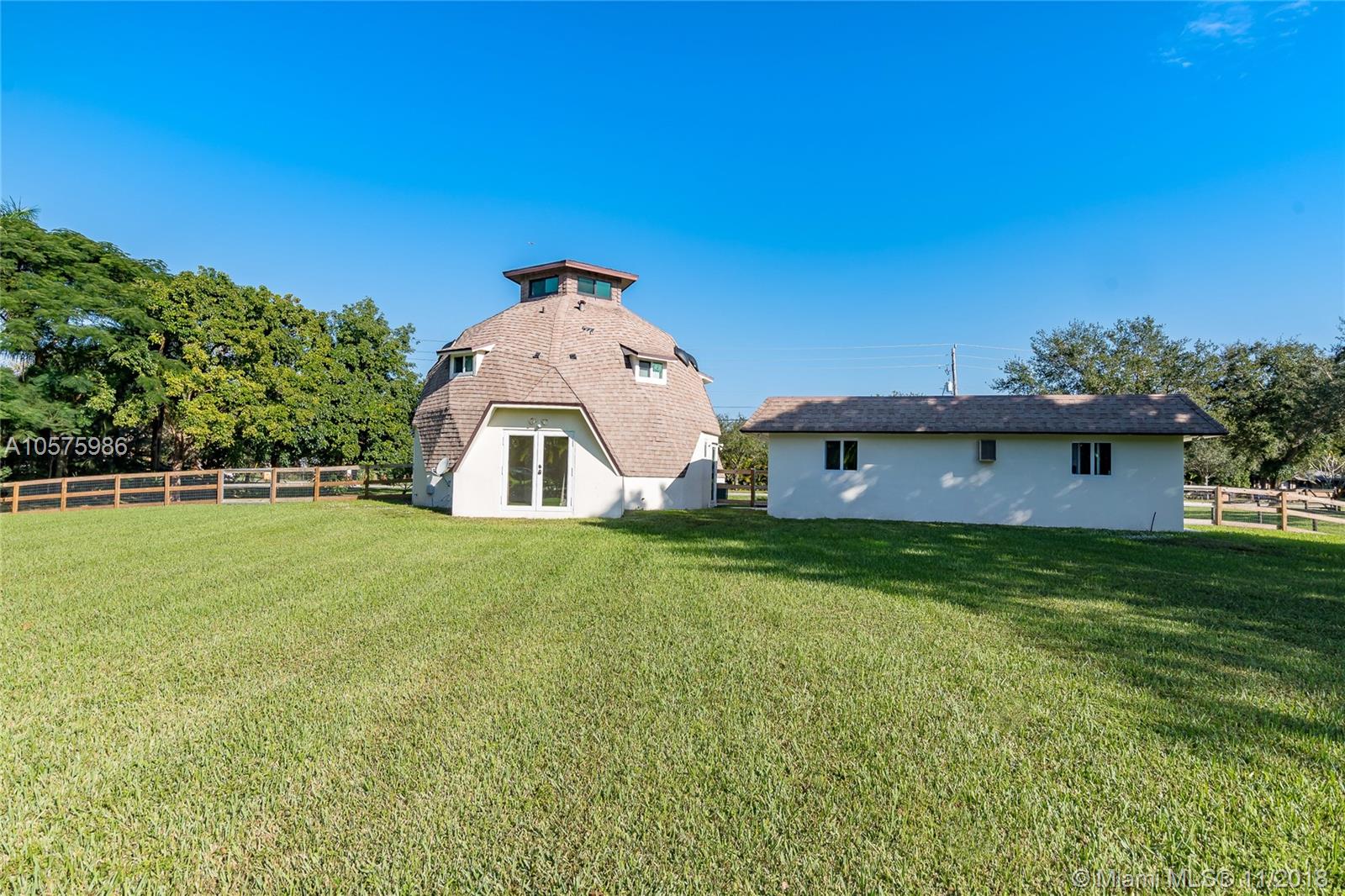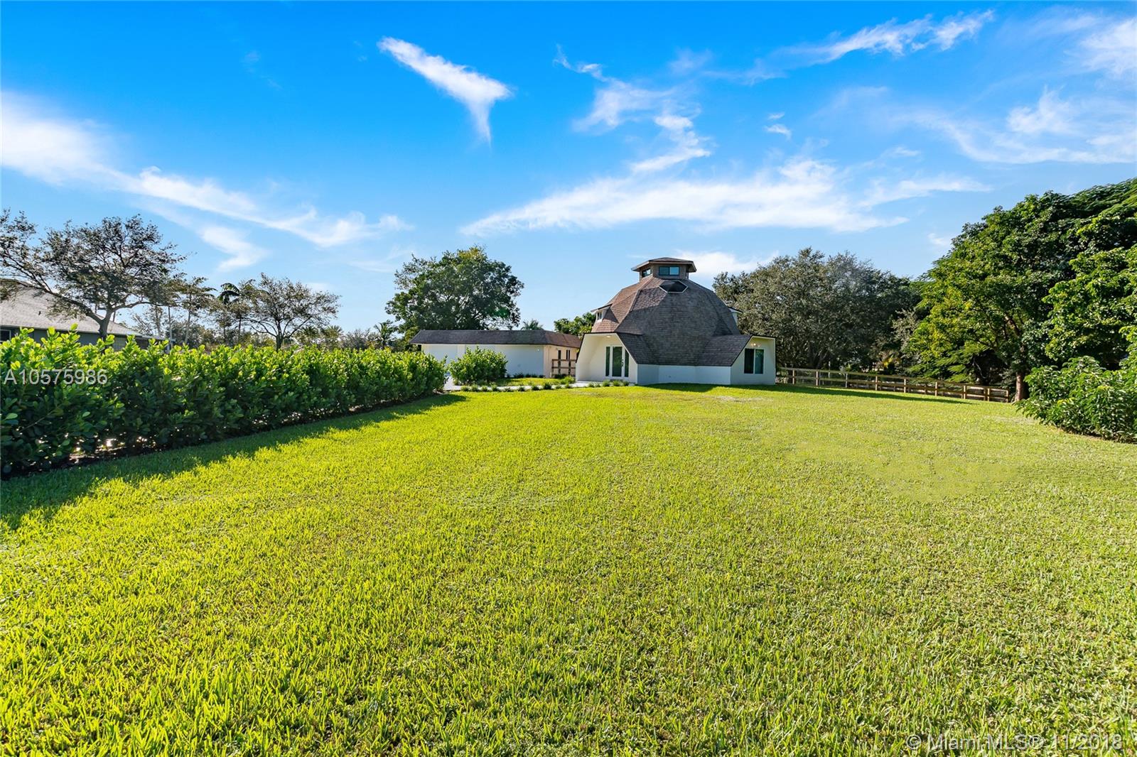 Stunning and unique geodesic dome style home located in Southwest Ranches. Beaming with pride of ownership, this home has been recently renovated. This 3 bed/ 3 bath home has updated kitchen with thick granite countertops, generous cabinetry, and chef’s stove. Creative interior design and window placement allows sunshine to fill the rooms, including the circular observation dome with a zen like atmosphere. New hurricane impact windows, a tankless water heater, and Nest thermostat have also been installed. Your detached garage has dedicated AC and a new epoxy floor. As soon as you pull into the driveway you’ll know you’ve found something special. Perfect for anyone looking to live in the picturesque equestrian community of Southwest Ranches. Schedule showing today before it’s gone!