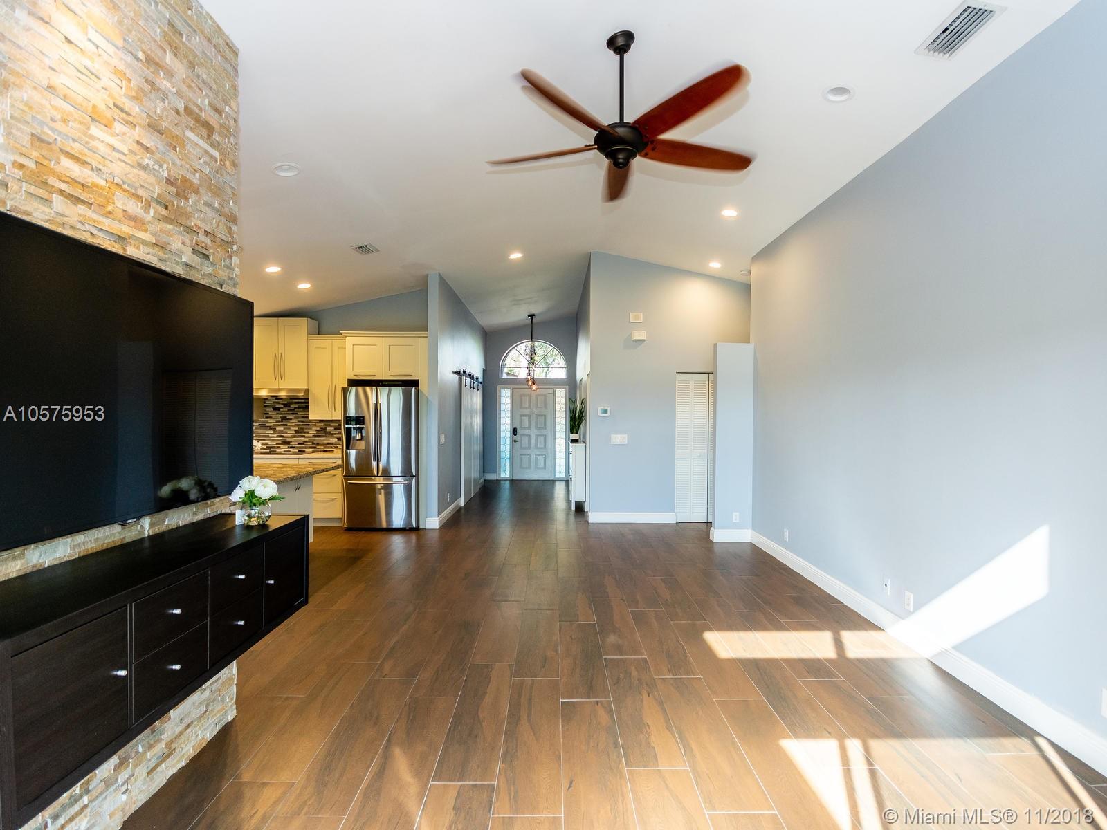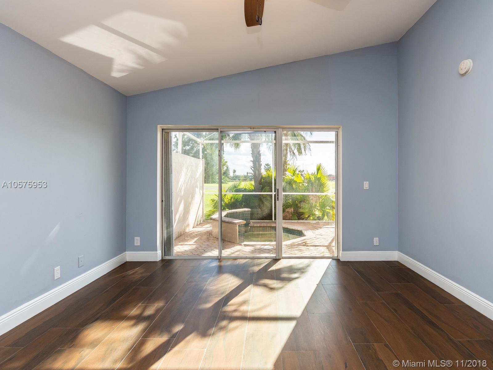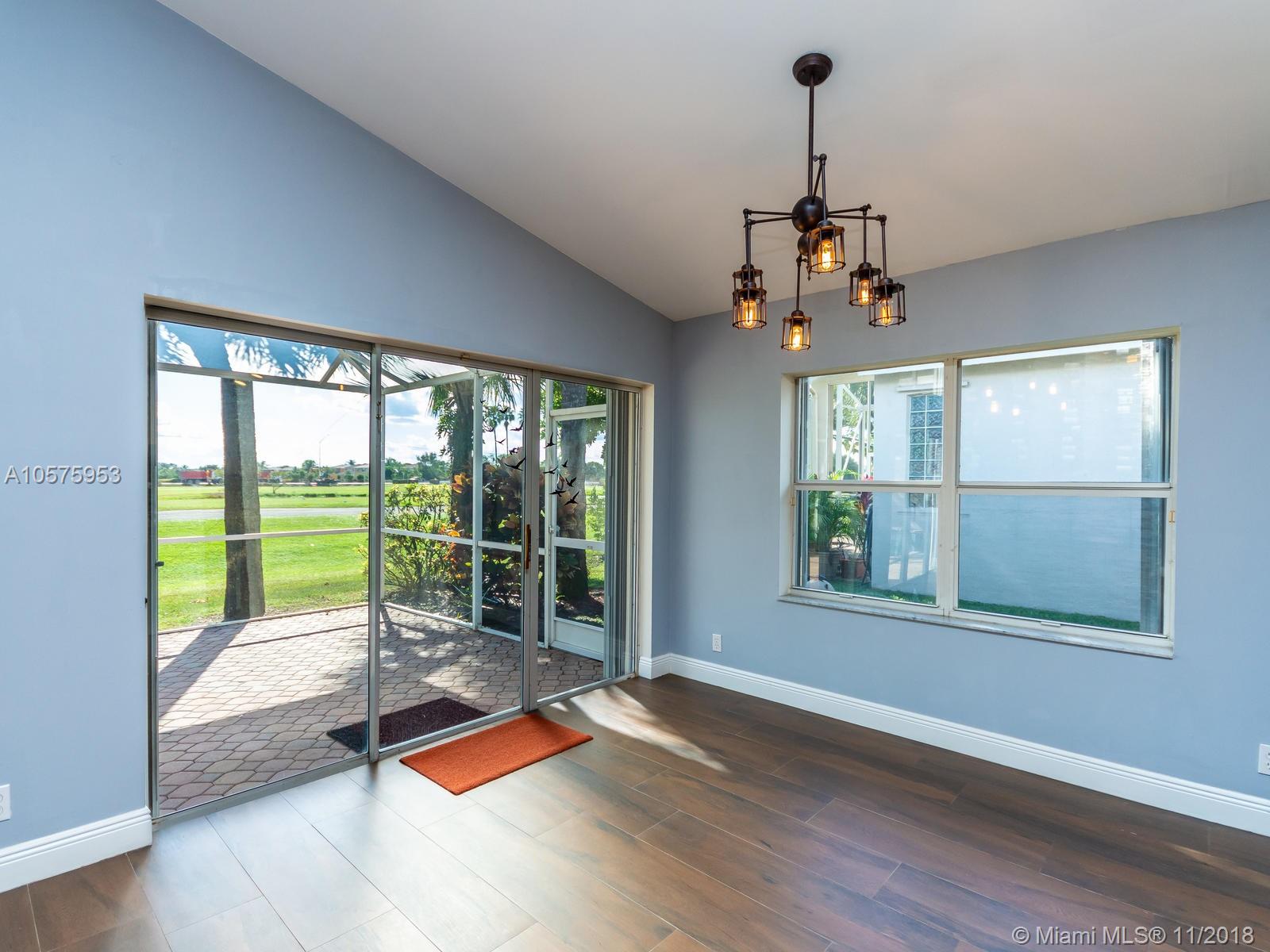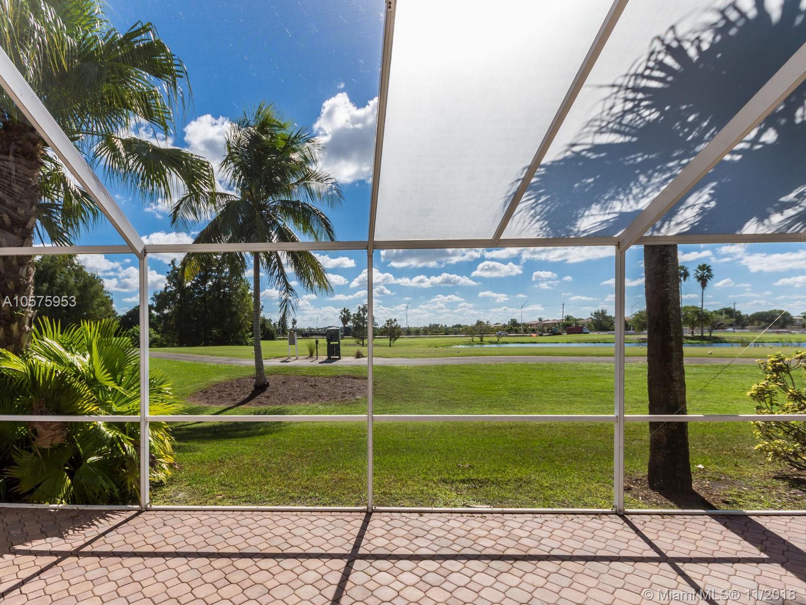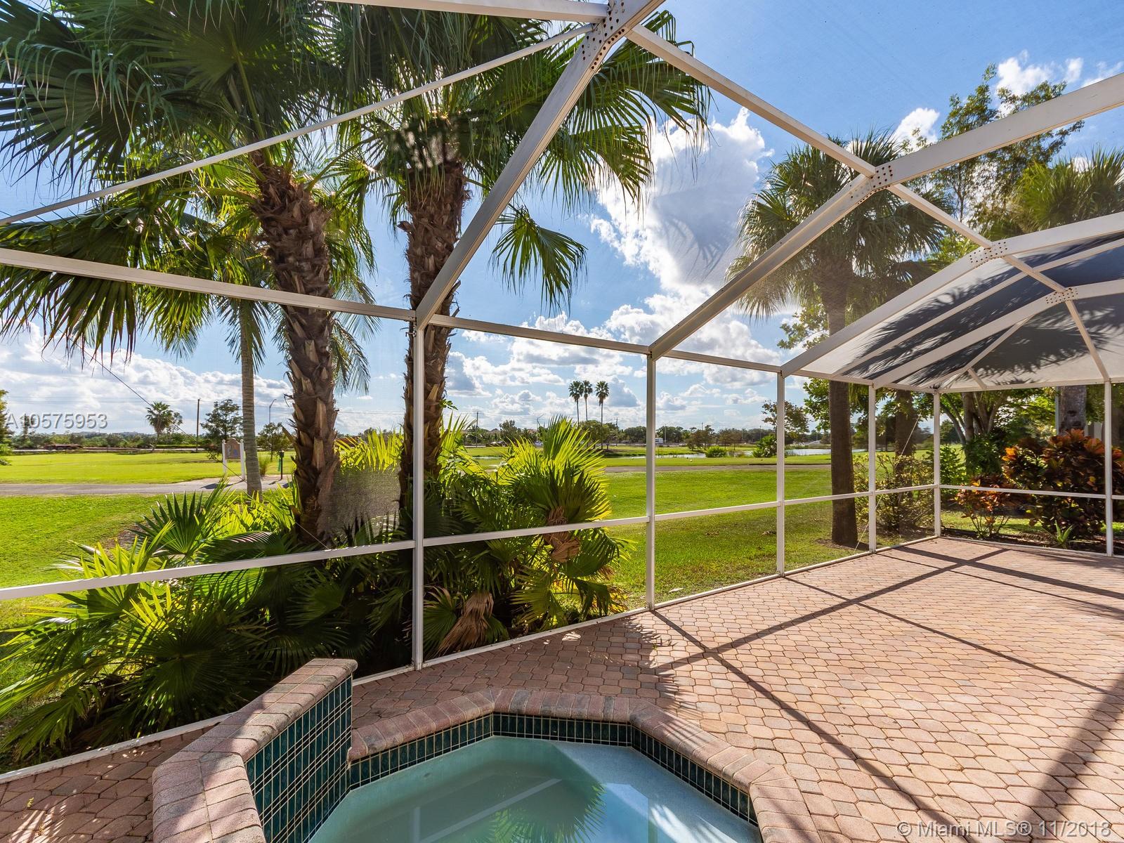 Come to fall in love with this SPECTACULAR HOME with an amazing view!! Impressive Gourmet modern white kitchen with granite top, tastefully designed. SS appliances with an Island open to the family room. Stone walls with wine racks and a gorgeous chandelier. Volume ceilings, new wood tile throughout, Accordion Shutters 3 Bds. with 2 Bathrooms. Master bathroom has dual sinks, tub & shower. "New Roof" A screen terrace with a Jacuzzi overlooking the serene lake and Golf Course. The house is located in the subdivision "Encino" of Grand Palms, Gated community with lots of amenities. The HOA covers Alarm, Cable, community Pool and all the common areas. IDENTICAL HOME LOCATED AT 1529 SW 151 AV CLOSED IN 9/18/2018 FOR $ 430,000