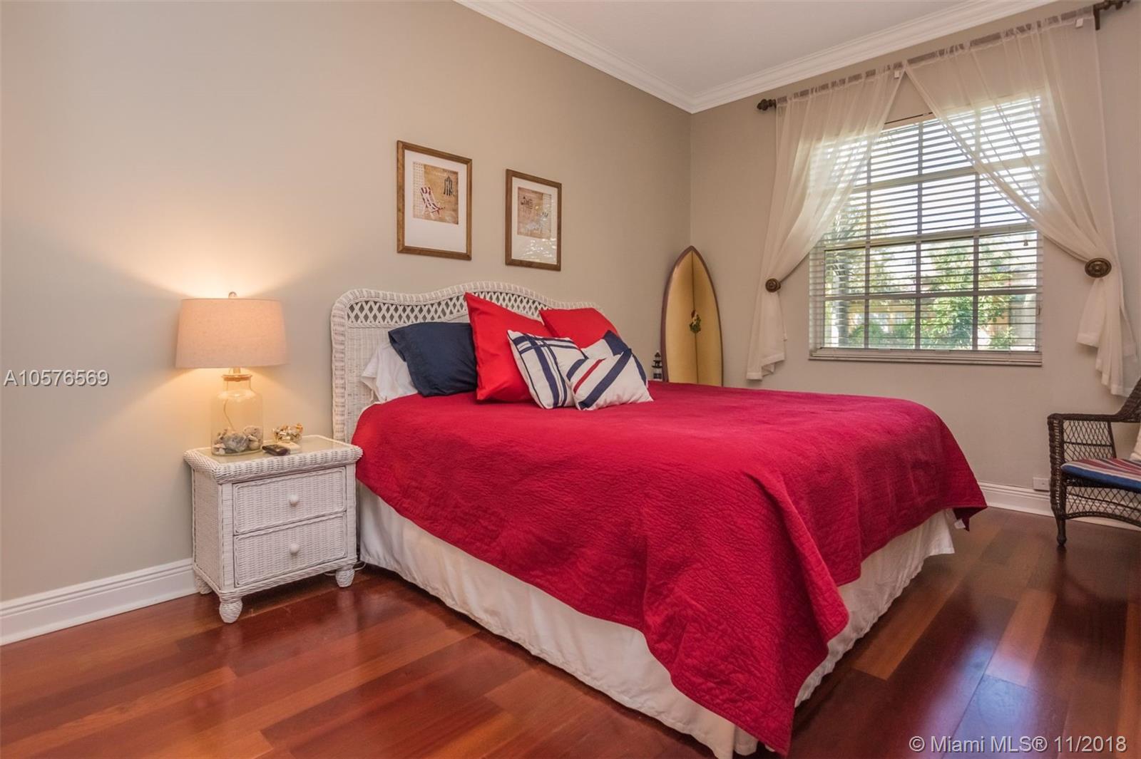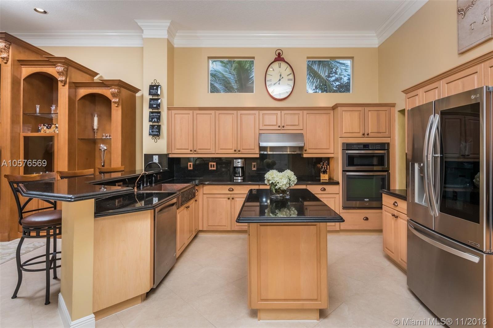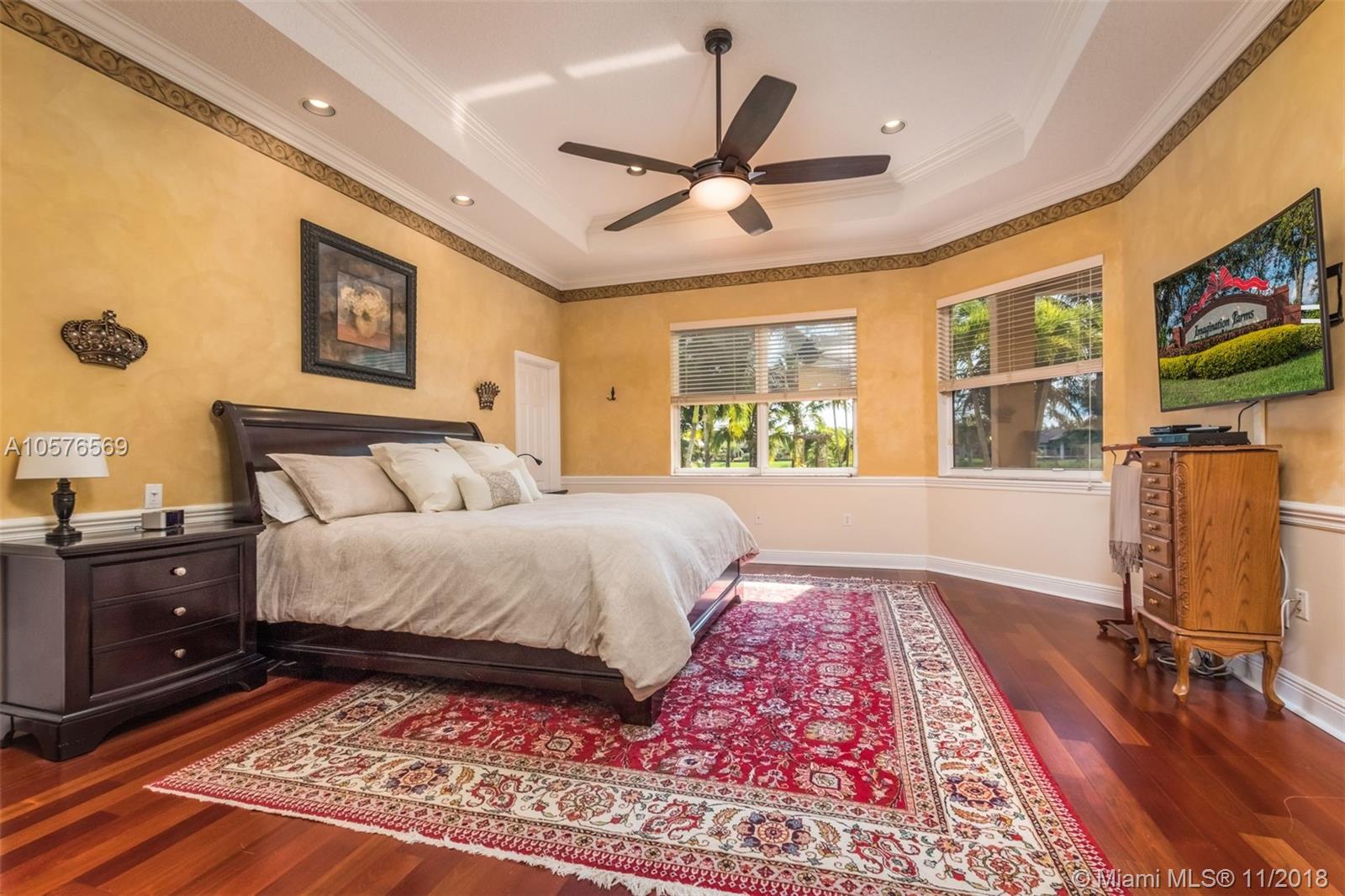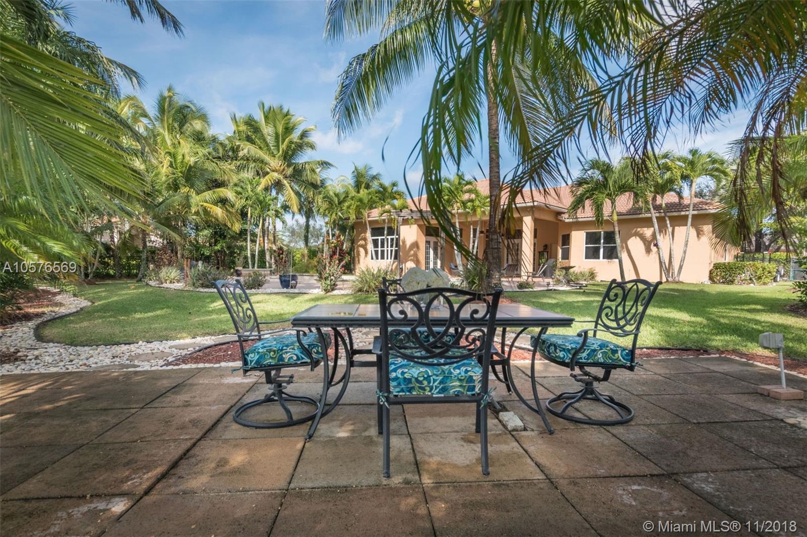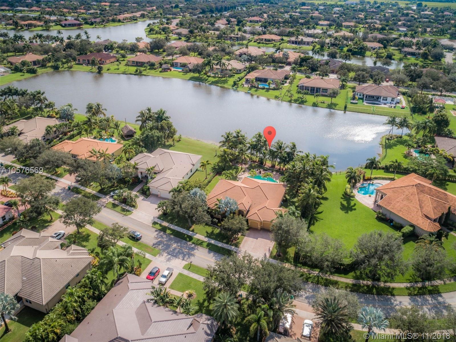 Imagination Farms is a west Davie outstanding community. On the NE corner of I75 and Griffin Rd, major highway access is a huge bonus. "A retreat in the burbs" is situated on a 43,308sf waterfront lot. Imagine your family enjoying this amazing space. Inside, find updates like elegant crown and chair rail moldings, oversized baseboards, neutral porcelain tile and real wood flooring, granite tops/backsplash, newer stainless appliances, cabinetry in pantry and a master closet. Salt system pool with new pump and waterfall. Also alarm, water filtration system, wall unit, all ceiling fans, light fixtures, garage openers and pool equipment stay. Natural light is abundant. Just feels like HOME. Office furniture is negotiable. Take a moment, view the video and photos of this inviting home.