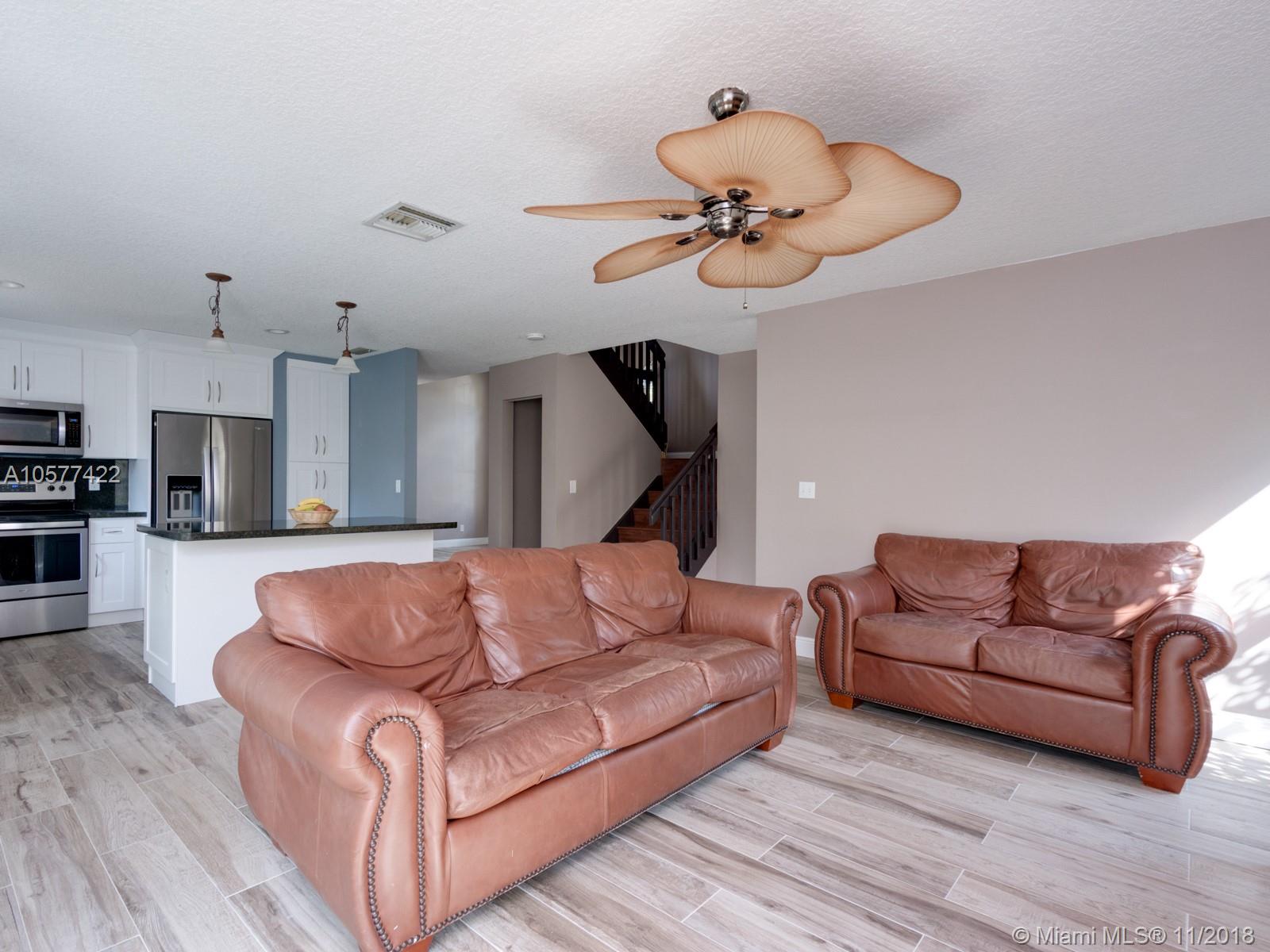 Bright spacious beautiful home, 3 Bedrooms and LARGE Open LOFT upstairs can be converted to 4TH BEDROOM. Features HURRICANE IMPACT windows and doors, completely REMODELED KITCHEN with granite counter tops, center island, PORCELAIN TITLE FLOORS, new stainless steel appliances, and new cabinetry. Osmosis WATER FILTRATION SYSTEM & water softener throughout home - no need for detergent - new top of the line washer and dryer. A/C 1 yr old, vaulted ceilings, French doors, Large master bedroom, oversized walk-in closet and a spacious new renovated master bathroom. Great community amenities, Community pool on same street, private park and playground, basic cable included.