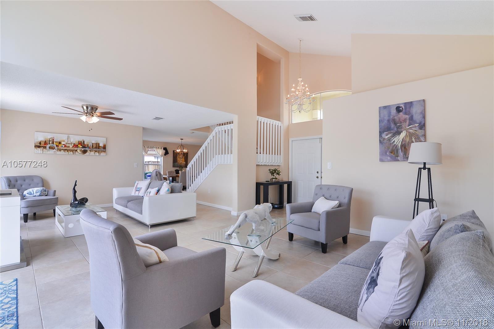 Beautiful, bright and spacious GORGEOUS HUGE LAKE FRONT home in Keystone lakes. This home has IMPACT WINDOWS on the side kitchen window and upstairs. All bedrooms are located UPSTAIRS and the 4th bedroom Is open as a loft. As soon as you pull up you will notice the large 10,000sq ft lot with nothing but endless sunset views from the back yard. Once in the front door you will enjoy all the natural sunlight and the open floor plan to enjoy with family and friends. The kitchen has granite counters, new appliances and a beautiful bay window for breakfast time! There is an indoor laundry room with new washer and dryer inside. This home is ready for your family and is surrounded by A+ Schools too! OWNERS MOTIVATED! BRING OFFERS!!
