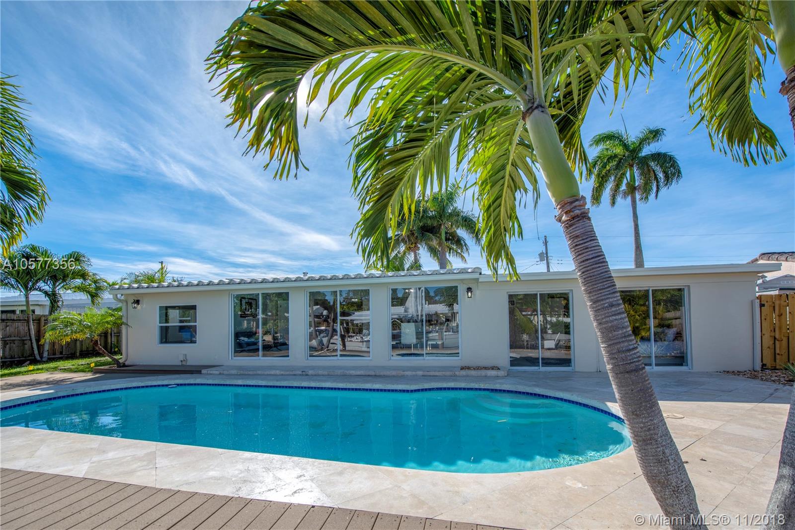 Stunning, move-in ready 5-bed/3-bath (Florida room was converted to master suite) waterfront home in Citrus Isles. Completely renovated, this home boasts a master bedroom suite, porcelain bathrooms, LED lighting, custom master closet w/ makeup vanity & new kitchen with quartz countertops, shaker cabinets & stainless steel appliances. Lush, tropical backyard with gorgeous pool & 75-ft dock with direct ocean access (no fixed bridges). Large driveway & 2-car port for easy access & TONS of parking. Located within 10 min from Riverwalk, Las Olas, the airport & 15 min from the beach.