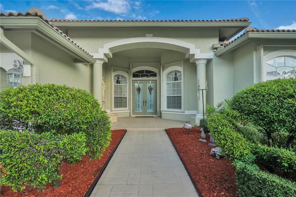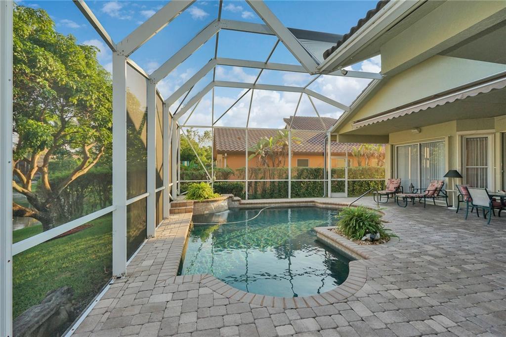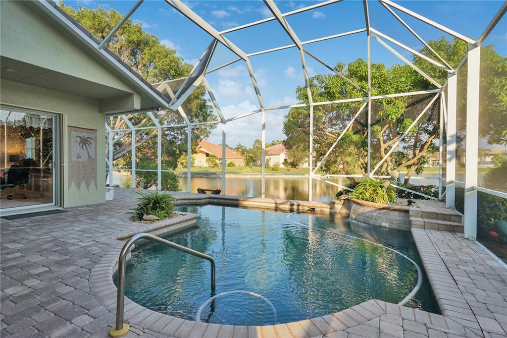 Just WOW! Very-well kept 4/3 + office, triple-split, waterfront, 3-car garage home w/heated pool located in 24-hour guard-gated Hidden Hammocks. Large circular driveway leads to porch w/glass, double-door entry. LED high hats in/out. Limitless views from living room to private pool, past fruit trees, over a lake. Outdoor patio w/built-in BBQ. Private office w/custom built-ins. Master w/walk-in closets, updated bath with new granite, frameless shower, custom plantation shutters over jet tub. Kitchen upgraded floor to ceiling w/cabinets, newer appliances, separate ice-maker, wine cooler. Upgraded baths. Newer washer/dryer. Garage workshop w/transfer switch installed for generator. Security cameras, hurricane shutters protect your home. EVEN MORE!! - see attachments! MAKE THIS your home!
