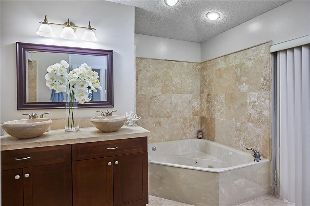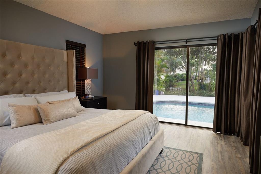 Improved Price! Beautiful, 4/3 WATERFRONT, turn-key, POOL home with a RARE SPLIT FLOOR PLAN in sought after Jacaranda Lakes! REMODELED w/FRENCH DOORS that lead to a HUGE MASTER SUITE with 2 WALK-IN CLOSETS, an additional STORAGE closet and a bonus space for your HOME OFFICE. Brand NEW KITCHEN and brand NEW FLOORING throughout! Spacious OPEN FLOOR PLAN with VAULTED CEILINGS makes this an ENTERTAINER'S DELIGHT! Tons of NATURAL LIGHT. Open kitchen w/ SKYLIGHT overlooks the pool and family room. SCREENED PATIO. SMART door lock and doorbell. SMART kitchen lights. SMART front window shades. LED lighting. New roof! (2012) New AC (2011) Professionally and impeccably LANDSCAPED. Front IMPACT WINDOWS. Hurricane shutters throughout. CENTRALLY LOCATED to shops, dining, and highways. MUST SEE!