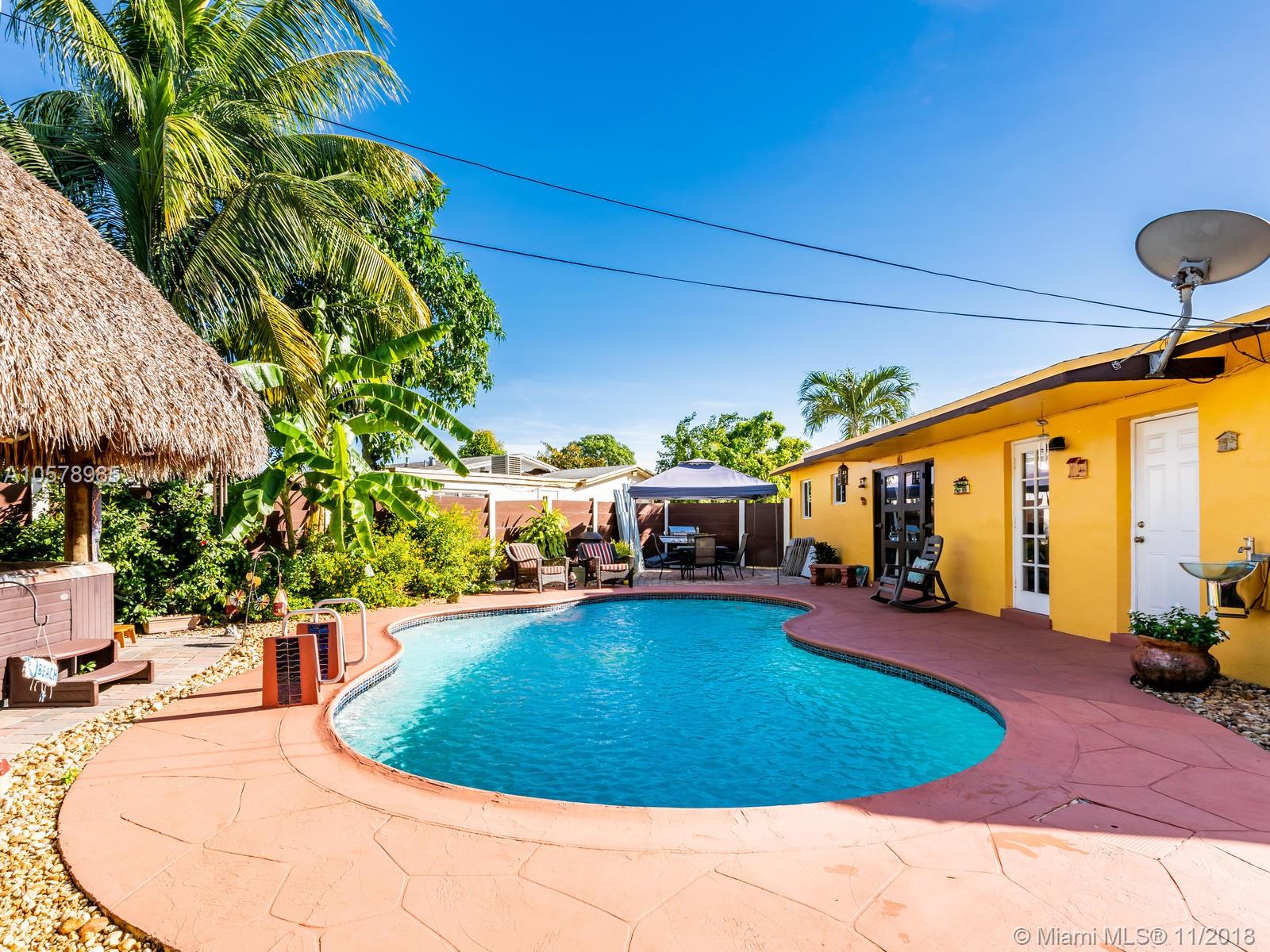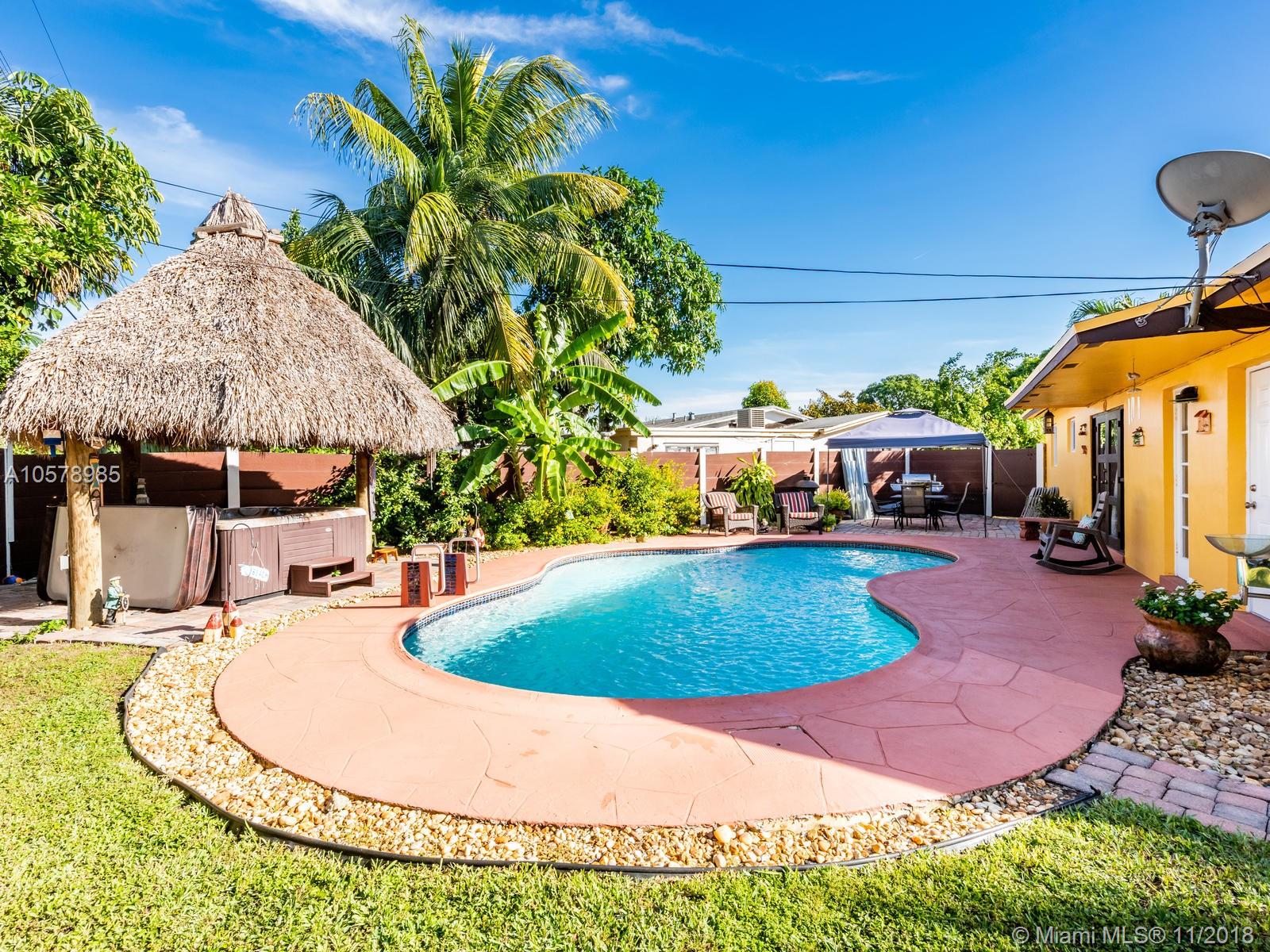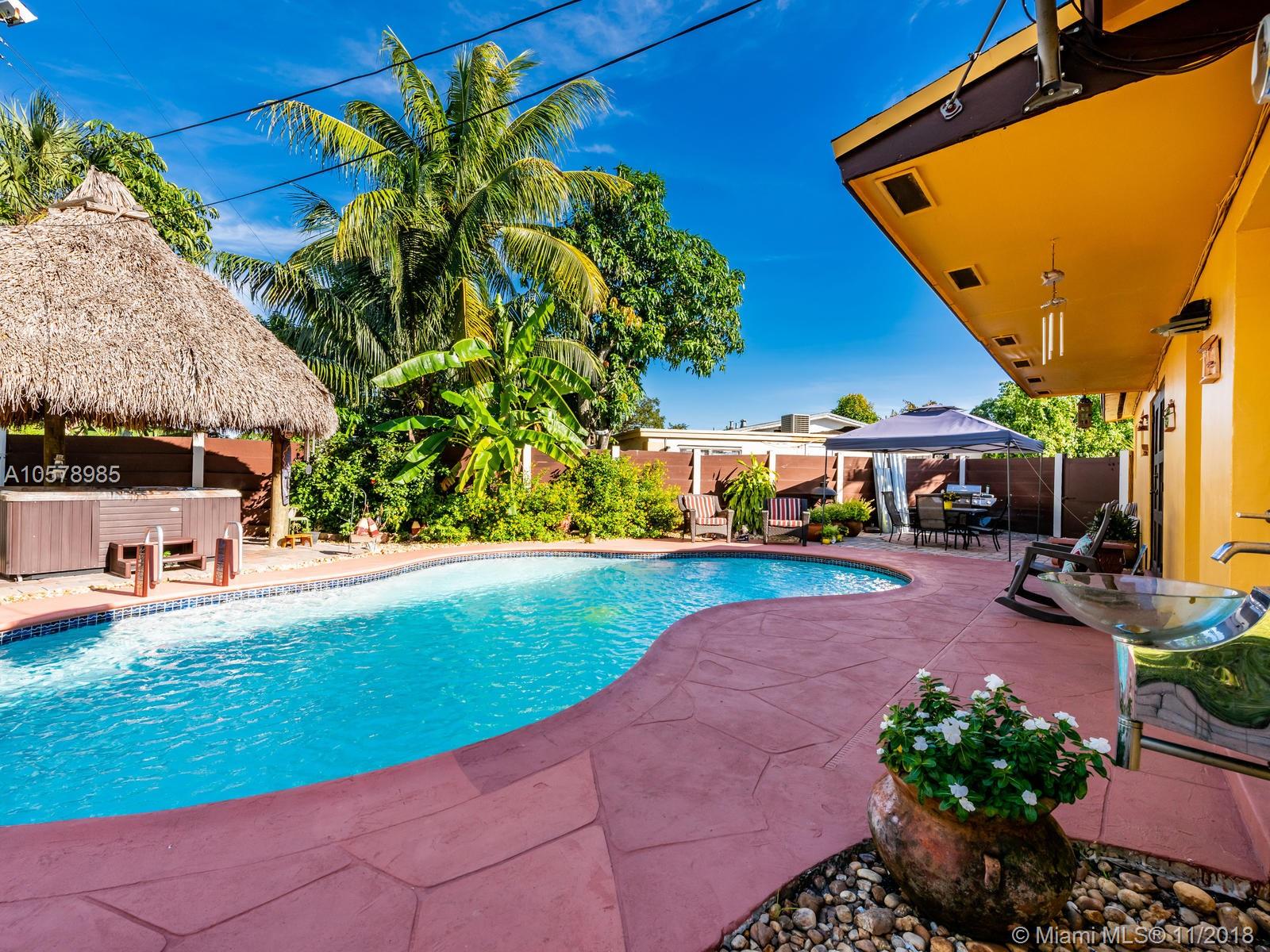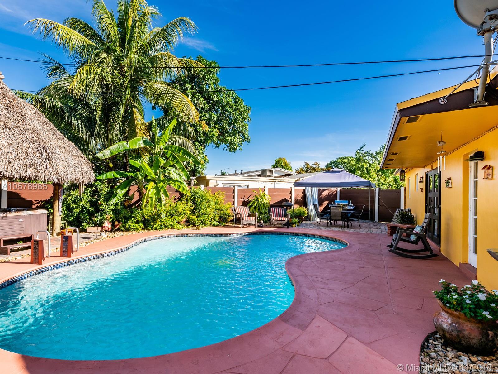 Beautifully & completely rejuvenated central Hollywood for sale. This corner beauty boasts 3 bedrooms, two baths, formal dinning, family and Florida rooms. Home sits diagonally on a over sized 9,268 sq.ft. lot w/ pavered driveway, decorative gates. This jewel of a home has been meticulously pampered & fully upgraded w/ a brand new architectural shingle roof, new 5 ton A/C, new porcelain floors accentuating the bright airy floor plan. Fresh coat of paint in & out & new 6" wood baseboards. Amazing baker's kitchen w/ expresso wood cabinetry, granite counters & forward facing cooking counter, glass top range, SS hood, SS appliances. Tropical backyard paradise w/ 15X30 pool, spa, cabana bath & Tikki hut. Great neighborhood & schools, close to highways, shopping & restaurants. This is the one!!!
