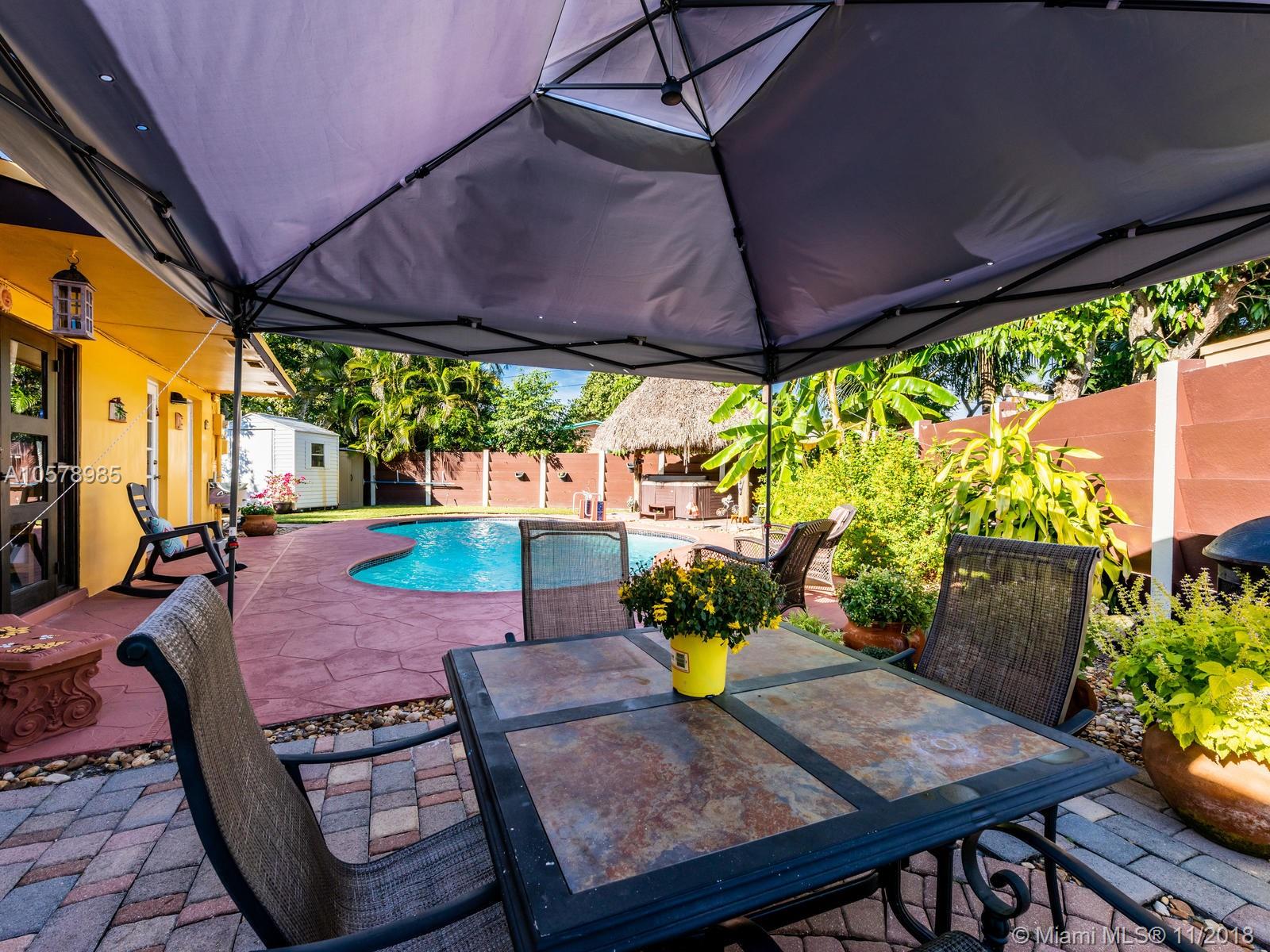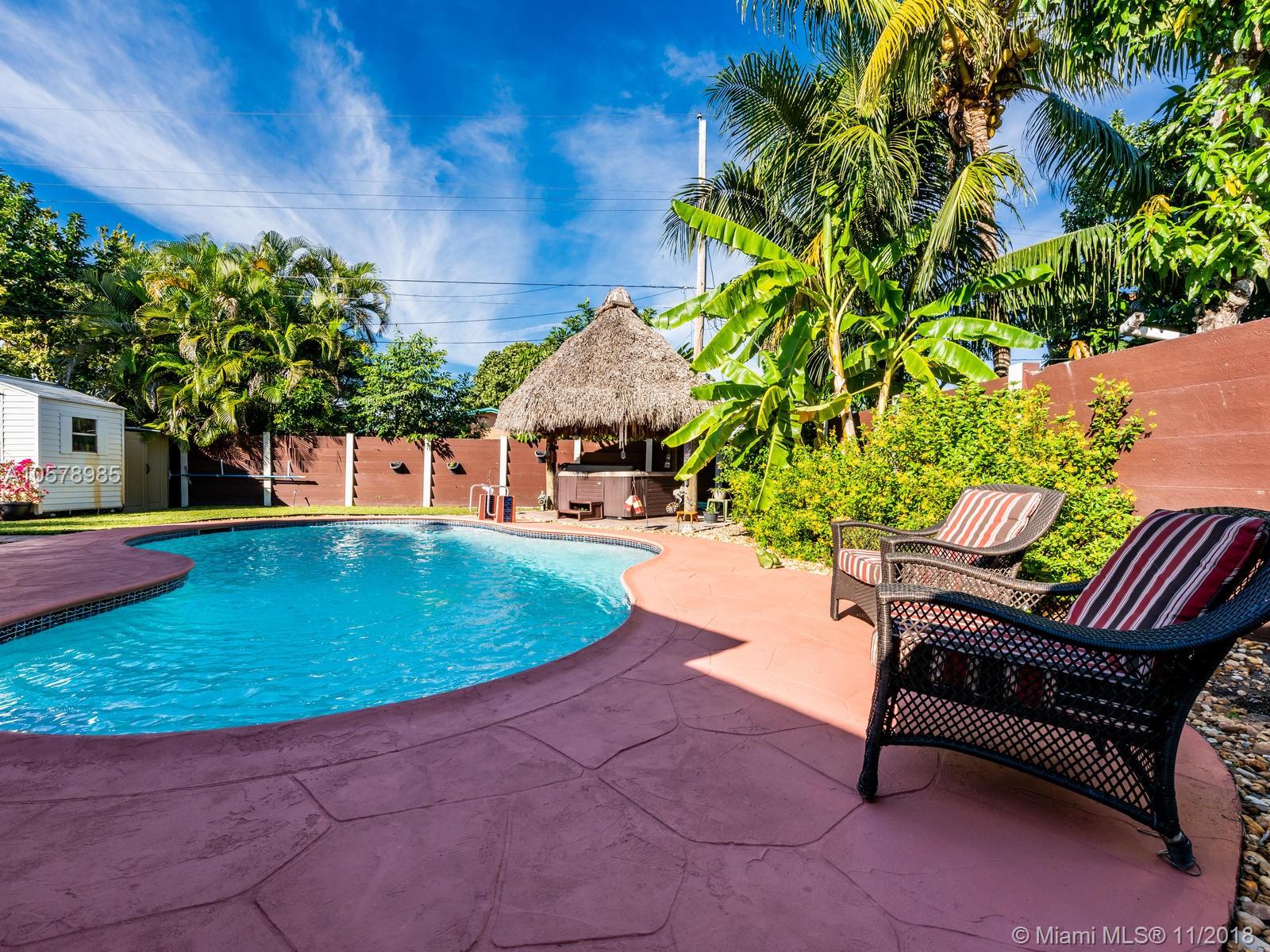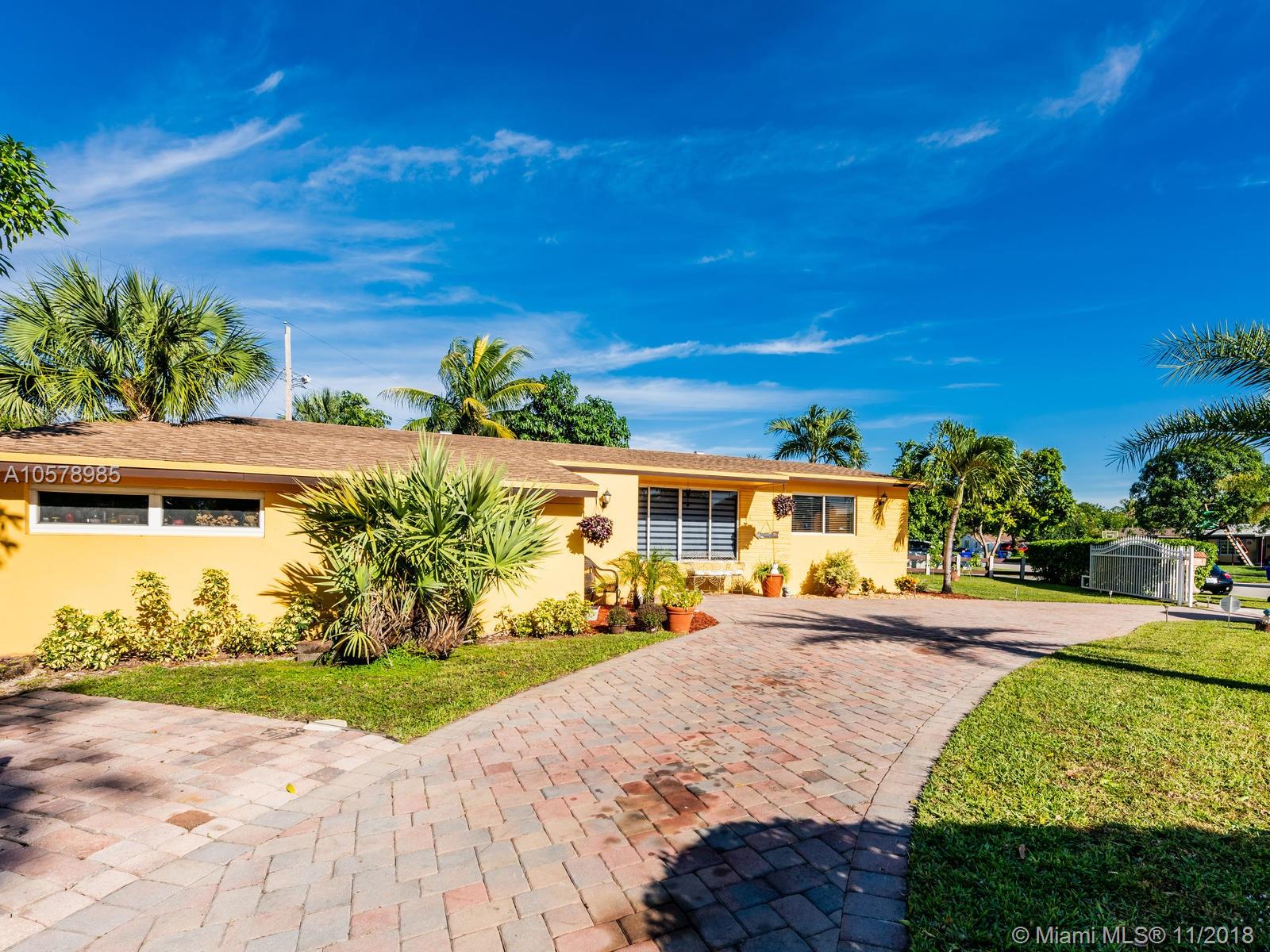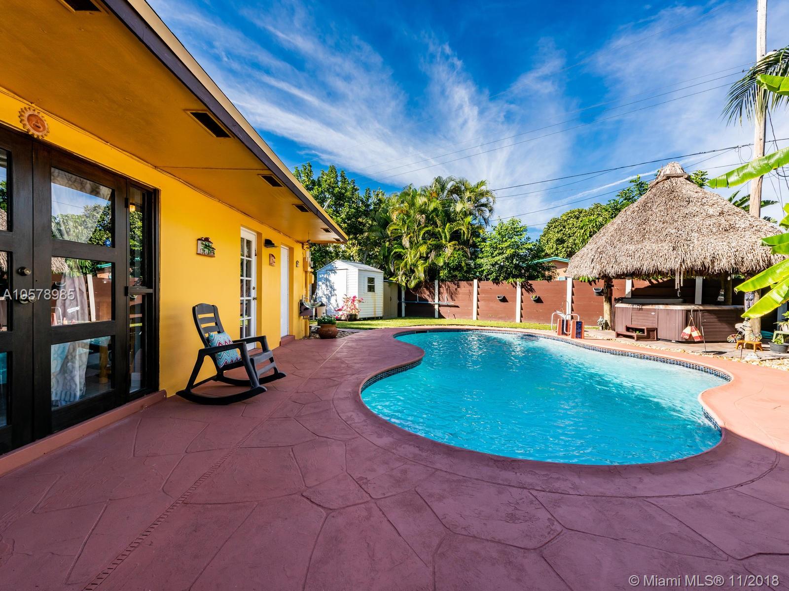 Beautifully & completely rejuvenated central Hollywood for sale. This corner beauty boasts 3 bedrooms, two baths, formal dinning, family and Florida rooms. Home sits diagonally on a over sized 9,268 sq.ft. lot w/ pavered driveway, decorative gates. This jewel of a home has been meticulously pampered & fully upgraded w/ a brand new architectural shingle roof, new 5 ton A/C, new porcelain floors accentuating the bright airy floor plan. Fresh coat of paint in & out & new 6" wood baseboards. Amazing baker's kitchen w/ expresso wood cabinetry, granite counters & forward facing cooking counter, glass top range, SS hood, SS appliances. Tropical backyard paradise w/ 15X30 pool, spa, cabana bath & Tikki hut. Great neighborhood & schools, close to highways, shopping & restaurants. This is the one!!!