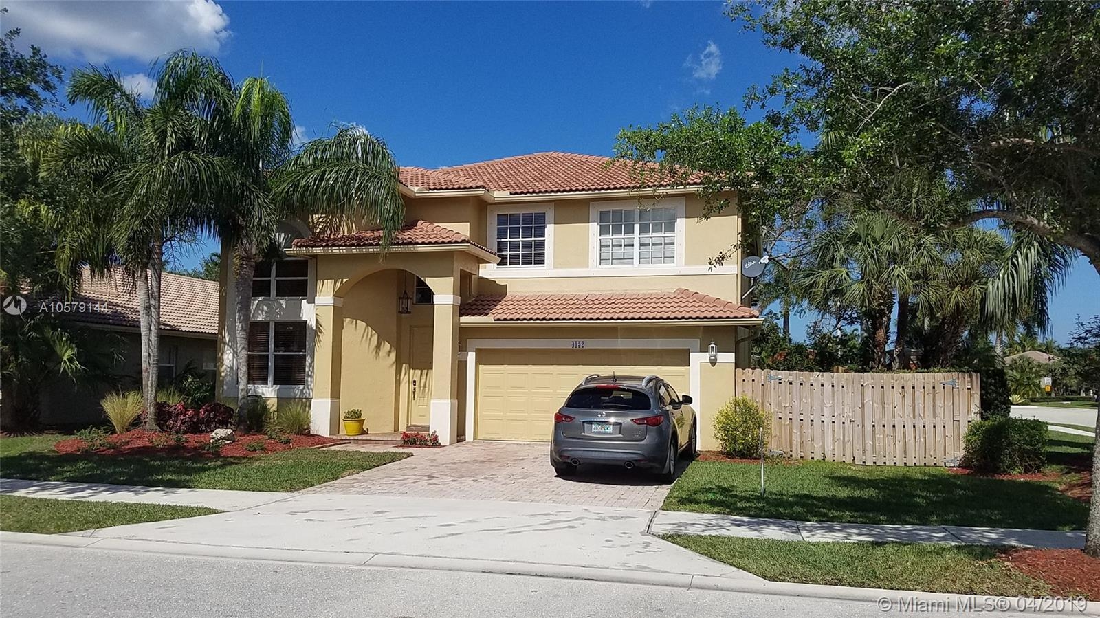 PRICED TO SELL !! This Move in Ready, 4 bedroom,3 bath home located on a corner lot features a fully upgraded kitchen with gorgeous granite counters,wood cabinets and all SS appliances.The large loft is great extra space for families and the home has a fully screened patio to enjoy the outdoors and entertain guests.One full bedroom & bath on the first floor is very convenient for family or guests.The fully fenced back & side yard is quiet and has room to park your boat. All tile floors in the living areas and wood floors in all bedrooms.Close to everything you need to live the good life:A+schools,shopping,dining,banks,Starbucks,Home Depot,walk to city park and close to I-75 for easy commutes to anywhere in S.FL. Welcome home to one of Weston's finest communities!