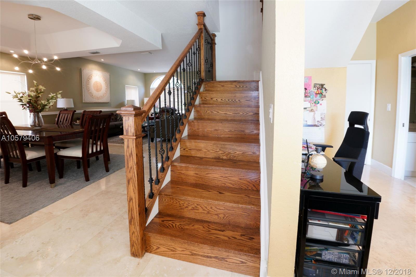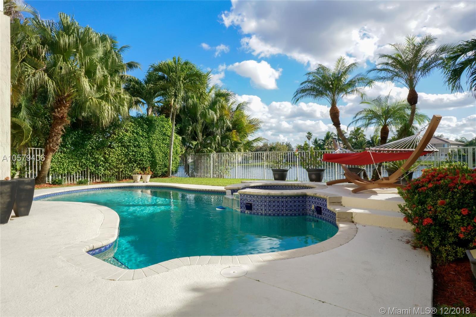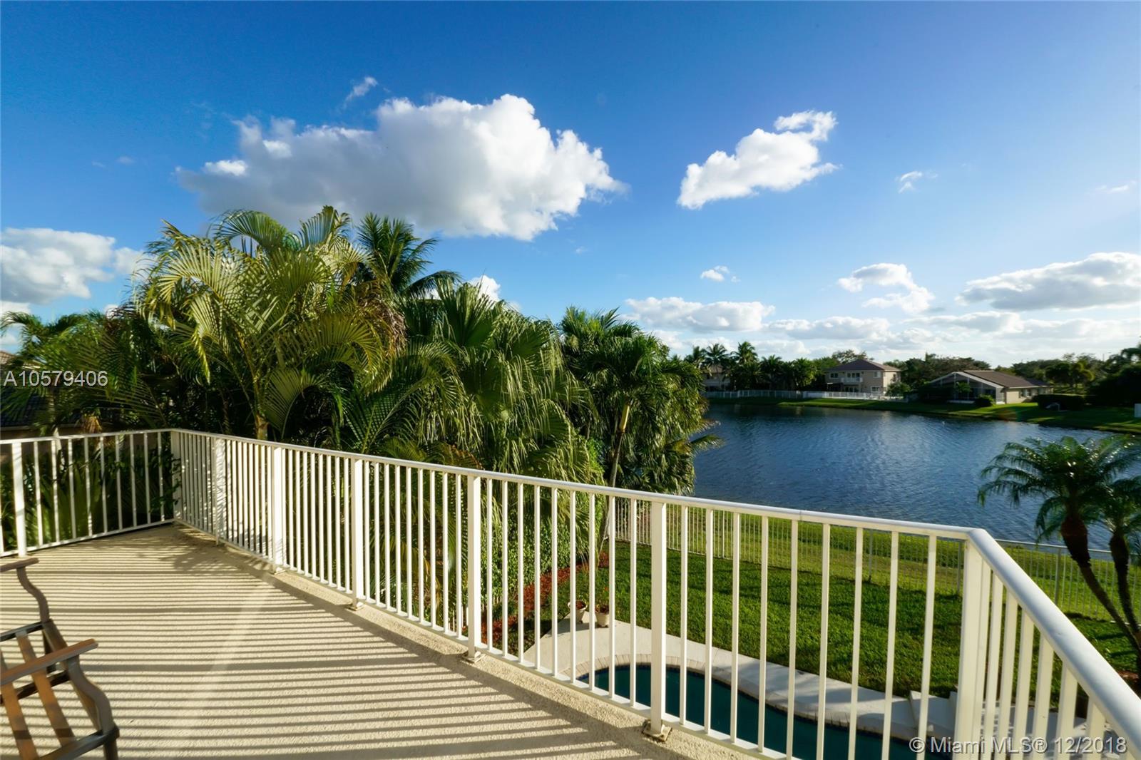 Welcome home to this beautiful 4 bed, 2.5 bath home in Emerald Estates, featuring free form pool & spa and gorgeous wide lake views. Marble floors in social areas, wood floors on stairs and in bedrooms. New wood staircase railings. All bedrooms upstairs. Second bathroom beautifully upgraded. Huge master suite with sitting room/study/office and huge walk-in closet. Upgraded LED lighting with additional high hats throughout. Updated kitchen with s/s appliances, granite countertops, wood cabinets and center island w/ wine fridge. Tankless water heater, accordion shutters on all windows.Tons of storage in garage with overhead storage system. All A-rated Weston schools. Close to shopping, highways. HOA fee covers lawn maintenance, cable TV, alarm monitoring and more. See attachments.