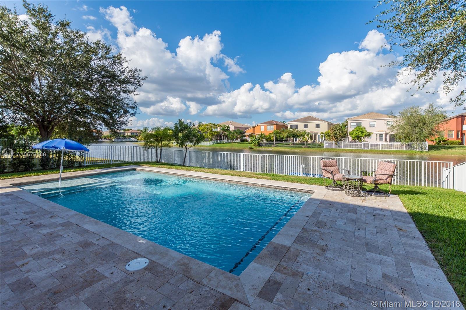 This captivating Vizcaya model will not last. 4 bedrooms, plus and office (easily convertible to a 5th bedroom) and 2.5 Bath rooms. So many upgrades! All ceilings are upgraded to smooth finish with recess lights and Tray finish on family areas. Kitchen upgraded to elegant wood cabinets, granite counter tops and top of the line stainless steel appliances.Wood style porcelain tiles on the first floor and wood floors on second floor and stairs. Relax and enjoy the brand new 30x15 salt water pool ( only 6 months old ) with the splendid lake-view. Located in the resort like community of Riviera Isles. You will love this Guarded Community's multiple amenities, gym, tennis and basketball courts, one of the best pools in west Miramar, and a 3.3 miles trail for walking, running and biking.