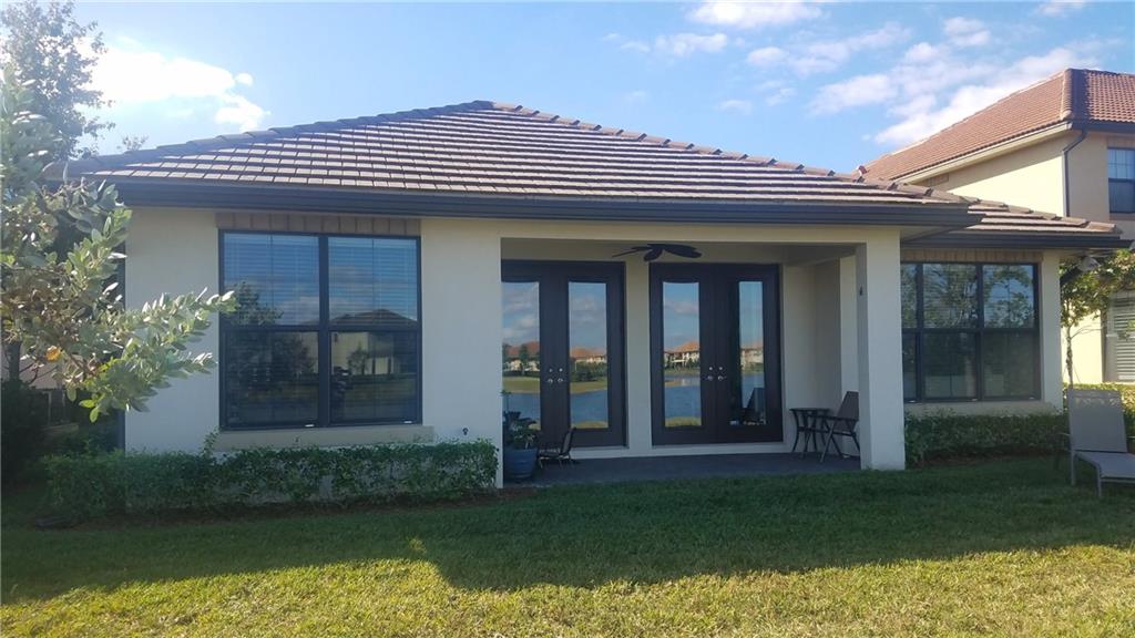 Watercrest Lake view one story House. 3 Bedrooms 2 1/2 Bath plus open Office or formal Dining. Tile Floors with Extended Casual Dining and extended master bedroom. French doors to Lanai. Near Club House and school Bus stop. high impact windows.