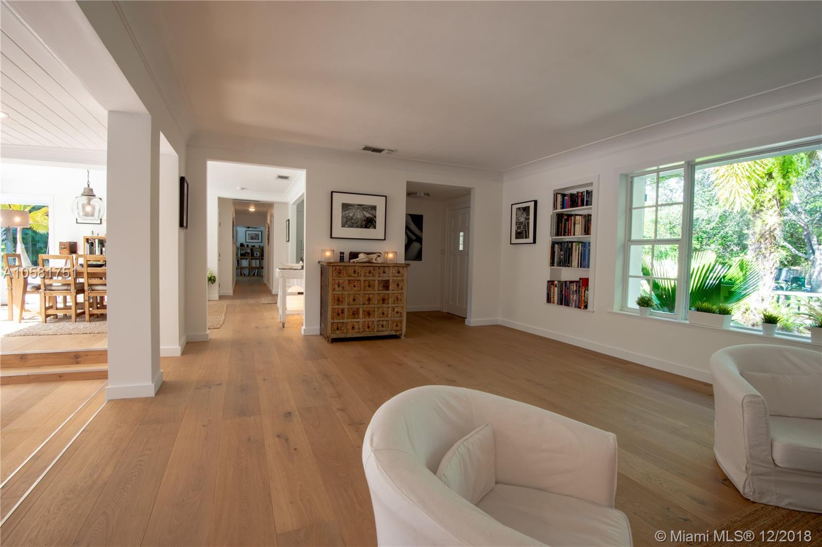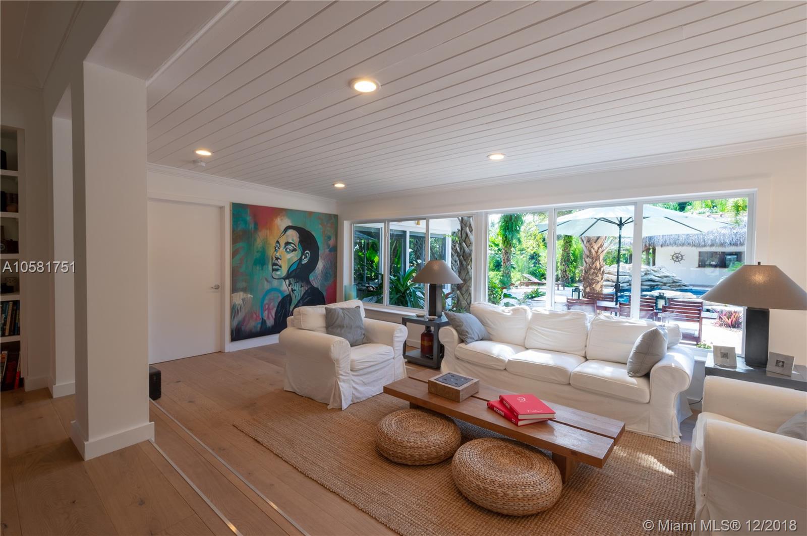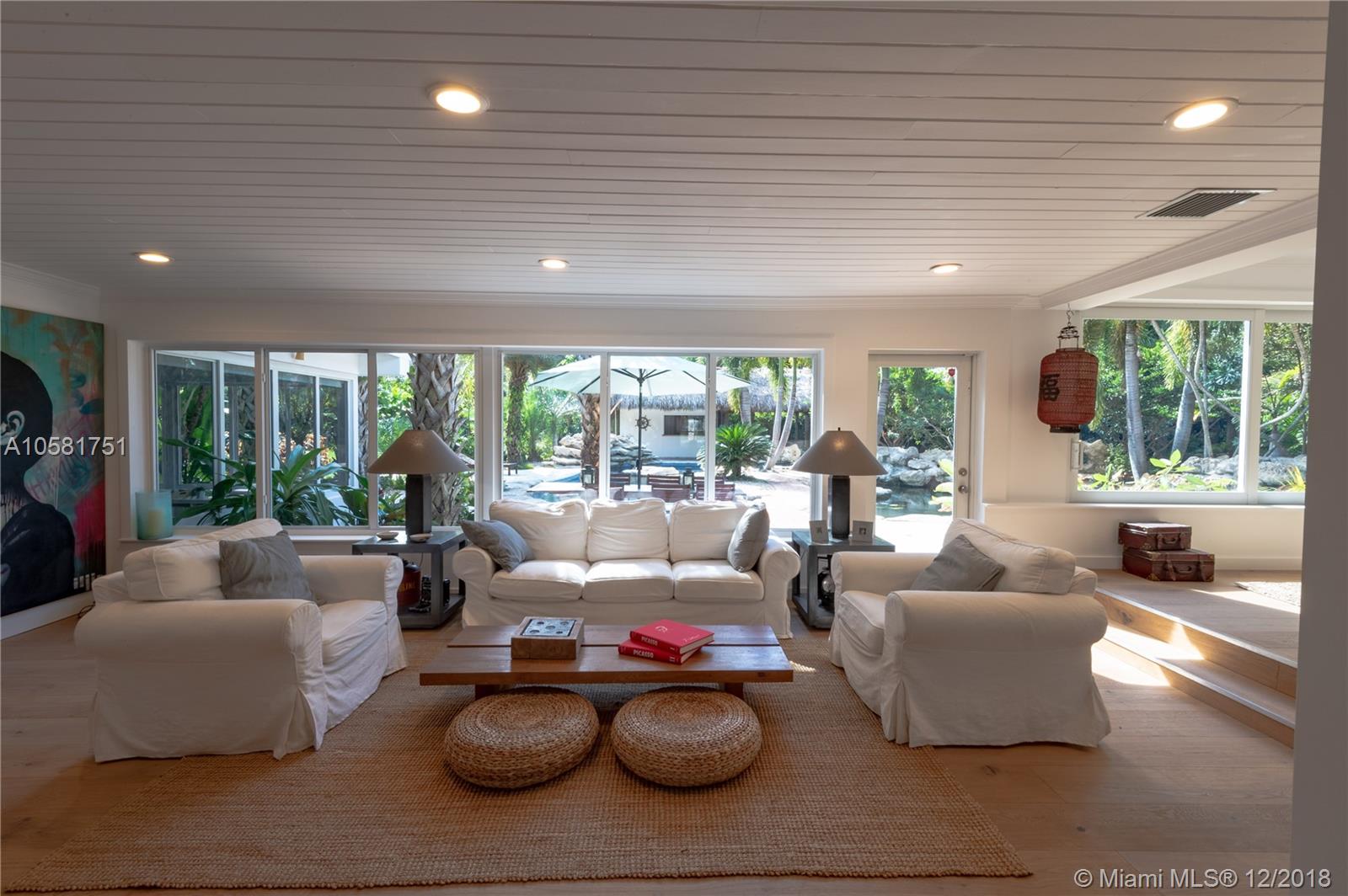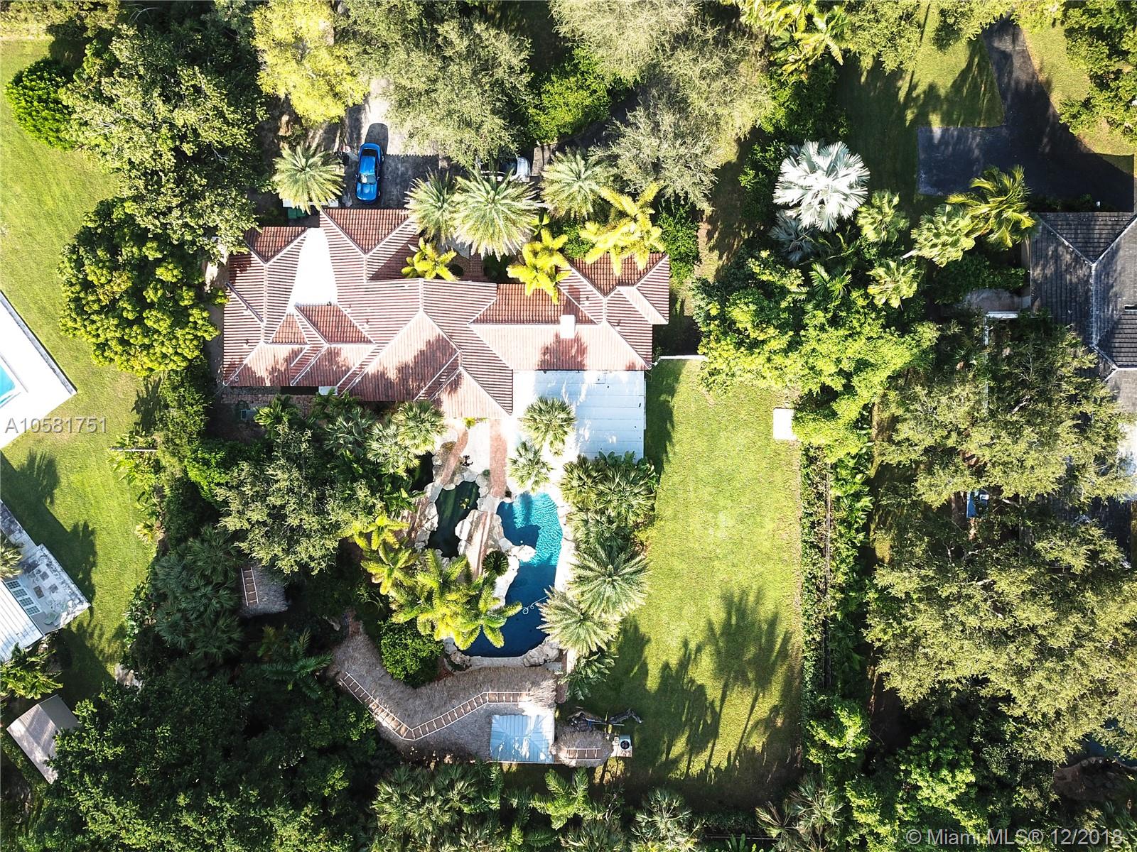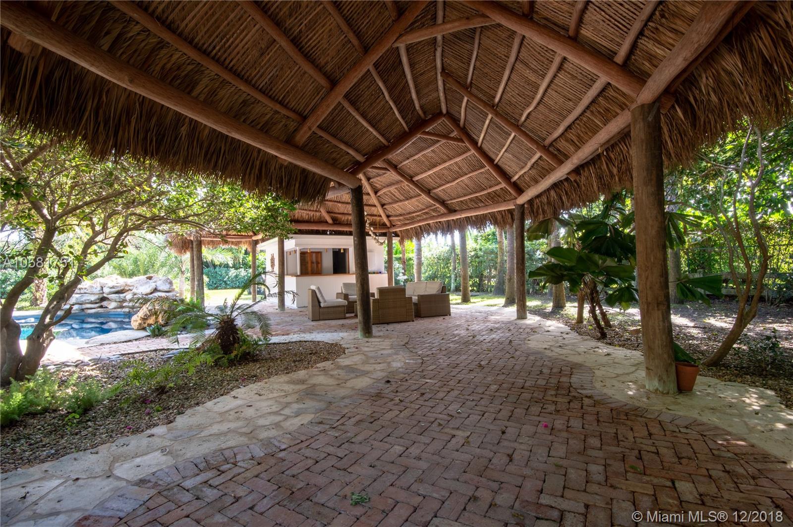 This charming updated 5 bedrooms, 5 baths Pinecrest home sits on a beautiful acre lot. The spectacular back yard has a resort feel to it. The tropical vegetation sets the tone - the oversized rock pool & water fall blends in an exotic atmosphere with an outdoor bar & tiki hut, a koi pond & an eco friendly chickee hut & more room for a tennis court! The home was fully updated with beautiful Californian oak wood floors throughout, impact windows, updated bathrooms & a new roof. The open spaces & bright light give the house a European vibe. The kitchen is equipped with top notch appliances, sub zero fridge, Wolf gas range, 2 Wolf dishwashers, 2 Wolf ovens & a Wolf microwave. The charming house is minutes from A+ rated International Private & Public schools, fine dining & shopping.