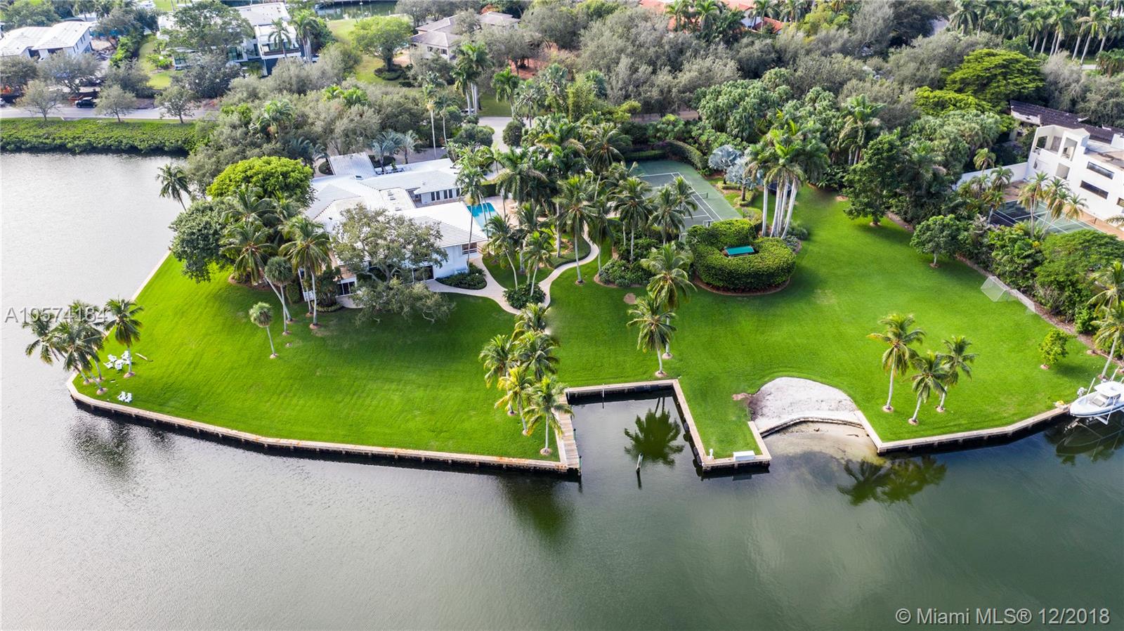 A once in a lifetime opportunity to purchase one of the largest parcels of land situated within the secure gates of Gables Estates. The property is over 3 acres with 750 feet of water frontage on a wide water basin with endless unobstructed views leading to the bay. This magnificent residence offers limitless areas for entertaining with infinite water views, lush gardens, a pool, grandfathered in tennis court and private beach. Room for up to 150’ yacht.
